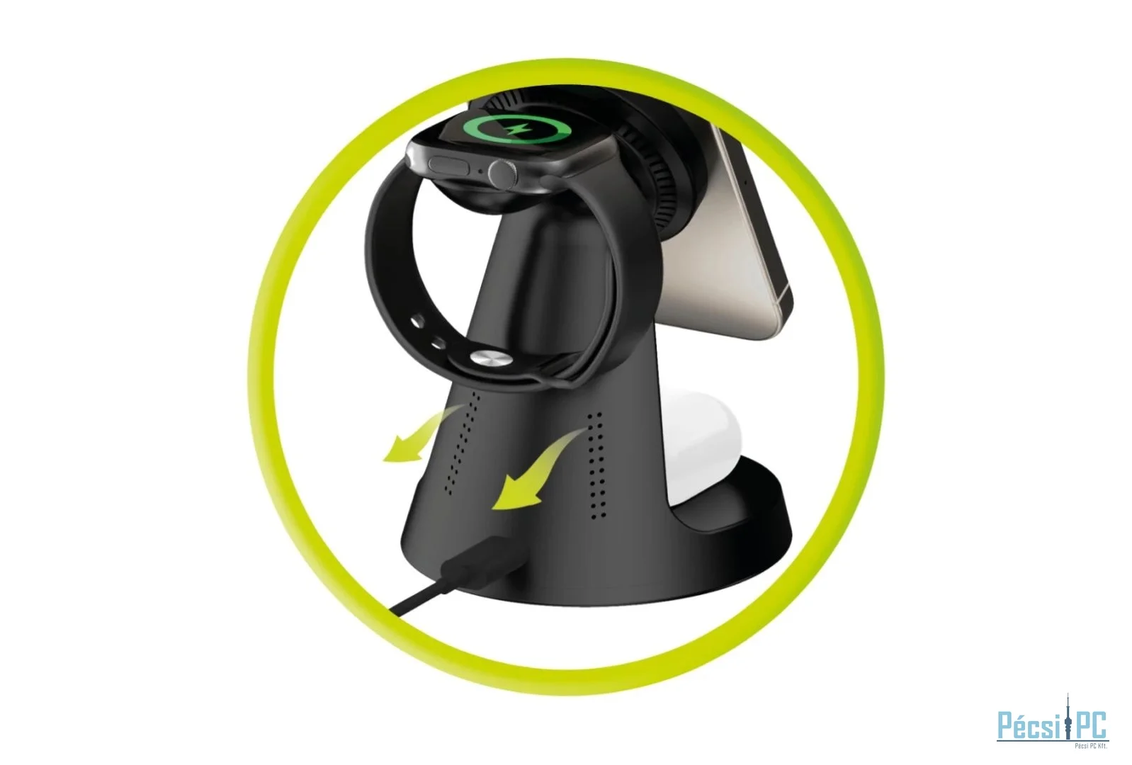 Egyszerre töltheti telefonját, fülhallgatóit és okosóráját - kényelmesen és kábelek nélkül. Ideális megoldás otthoni és irodai íróasztalokra egyaránt.