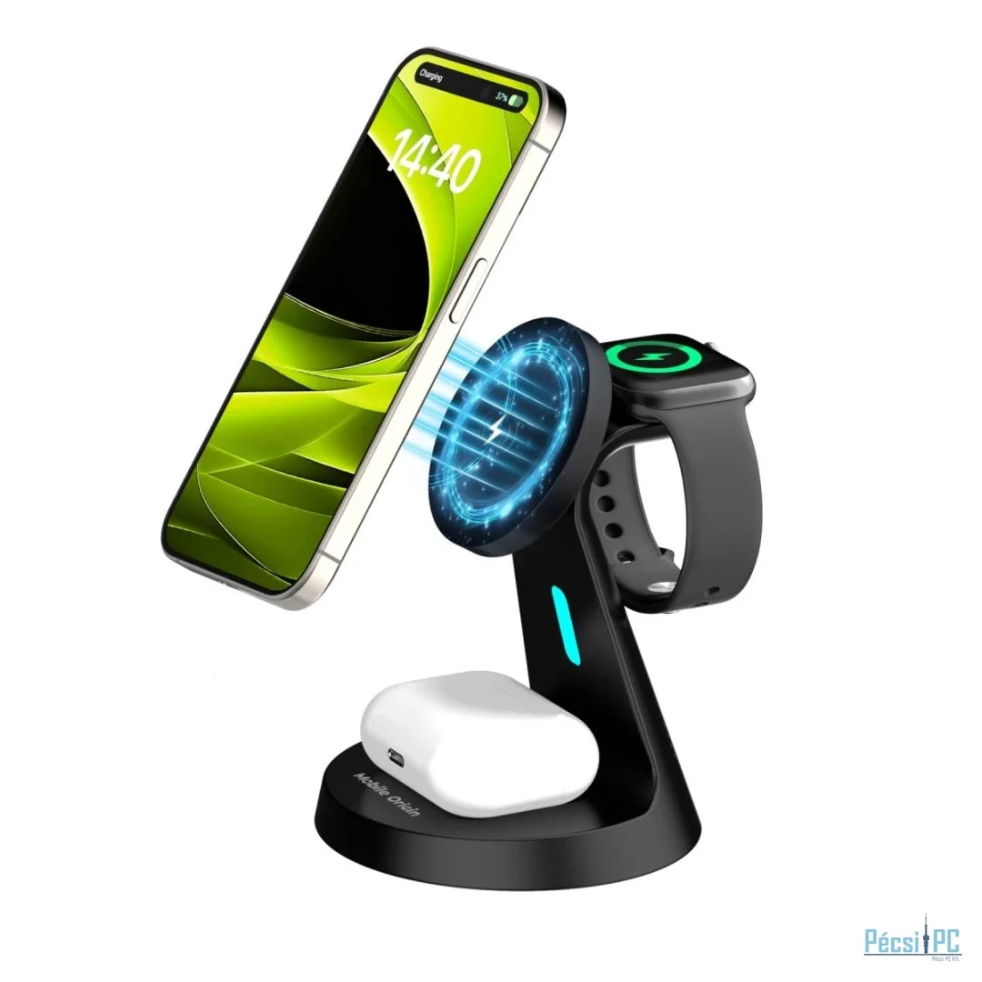 A PW9 3 az 1-ben vezeték nélküli mágneses állvány kényelmes és hatékony vezeték nélküli töltést biztosít telefonja, fülhallgatói és okosórája számára egyszerre. MagSafe kompatibilitással, LED-es töltésjelzővel és többszintű védelemmel megbízható és biztonságos használatot biztosít otthon vagy útközben. Átgondolt kialakítása beépített hűtőbordát tartalmaz, és támogatja a vízszintes és függőleges elhelyezést is, így tökéletes a mindennapi használathoz.