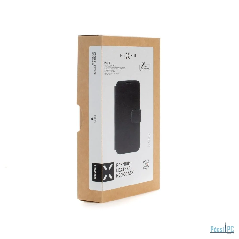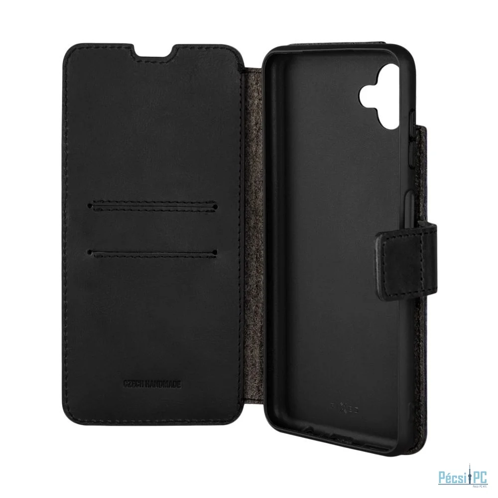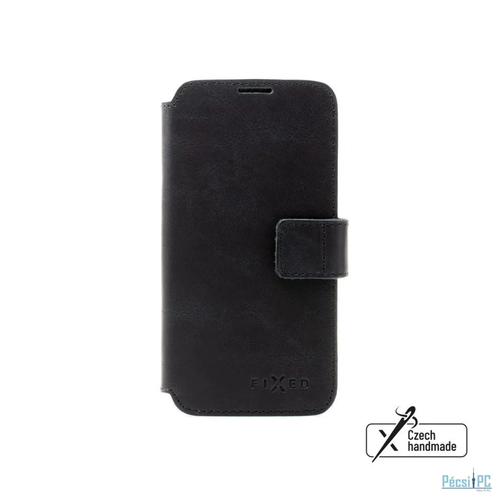 FIXED ProFit oldalra nyíló telefontok kézzel varrott valódi bőr, Samsung Galaxy M13 5G készülékhez, fekete