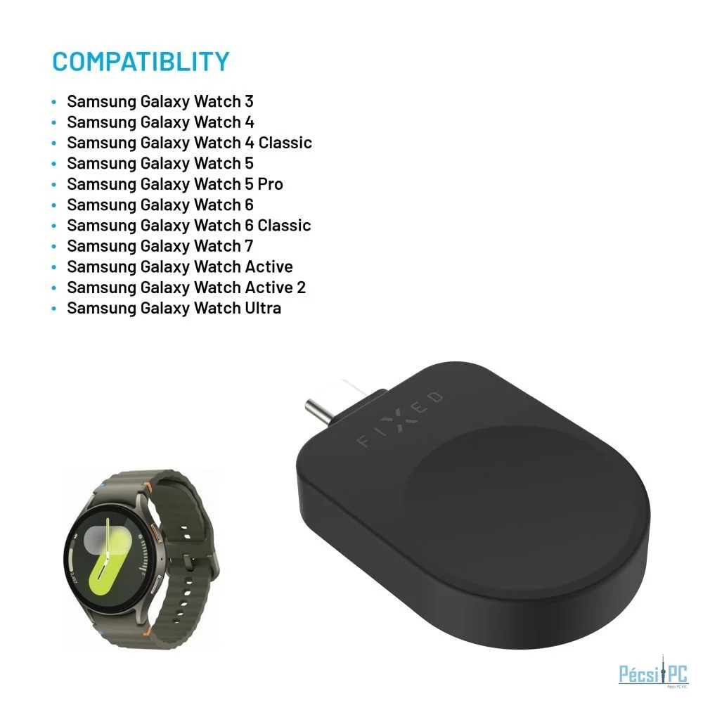 FIXED USB-C töltőadapter Samsung Galaxy Watchhoz, Powerstation Uni készülékkel kompatibilis, fekete