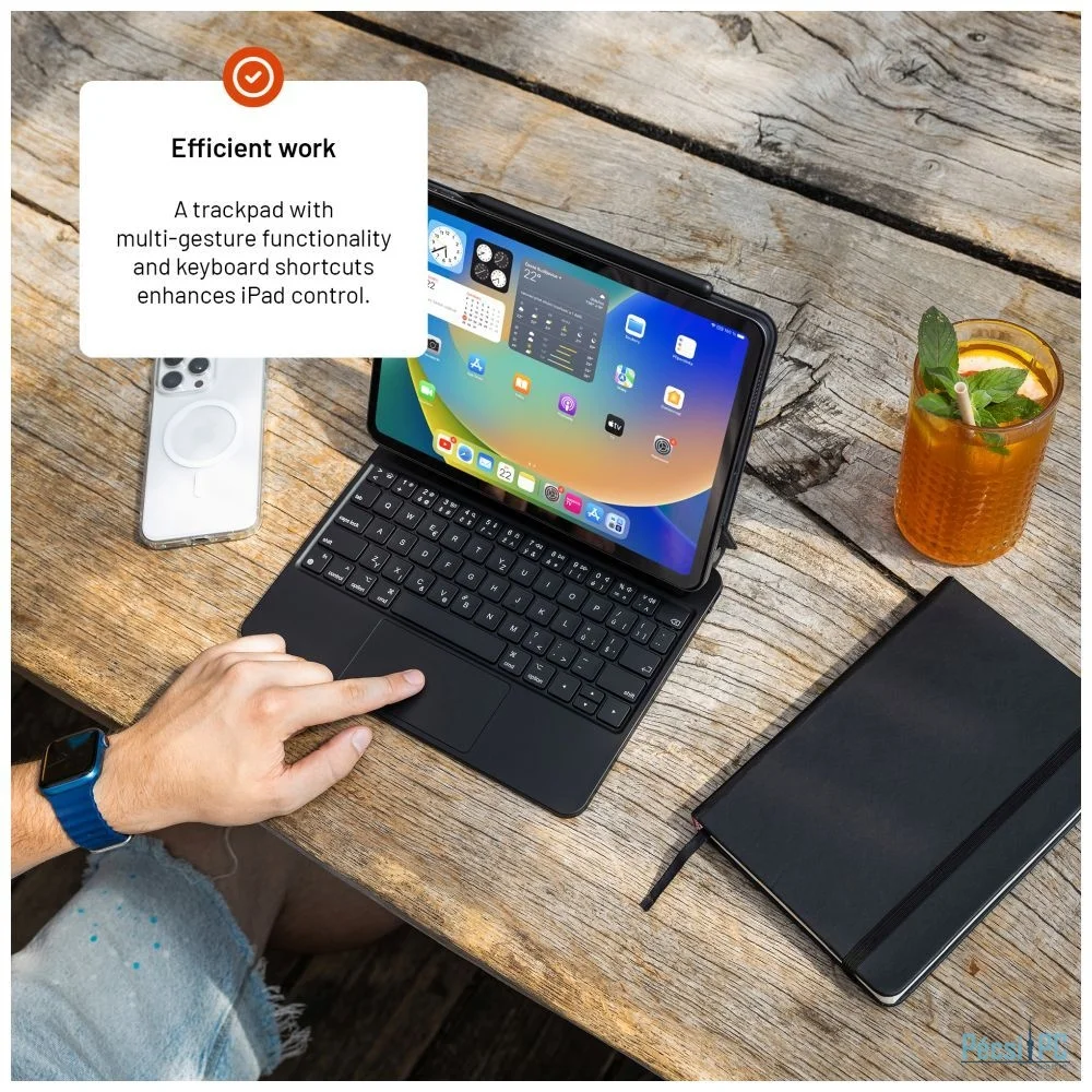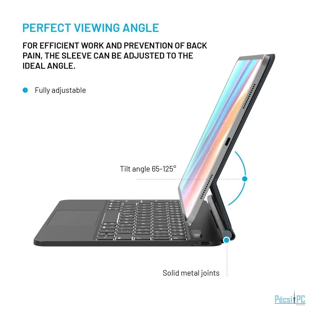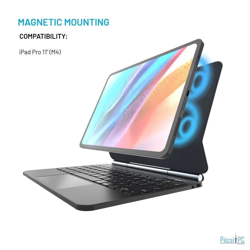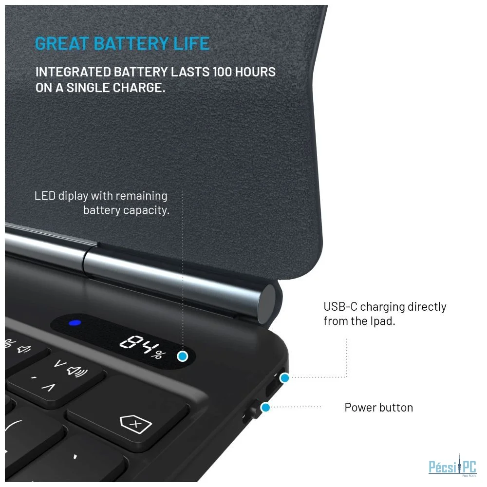 A FIXED Typee tok egyesíti a vezeték nélküli billentyűzetet és a hibátlan trackpadet az iPad táblagép védelmével. A billentyűzet ötpontos multi-touch trackpaddel és funkcióbillentyűkkel rendelkezik, amelyek támogatják az iPadOS-specifikus gesztusokat és billentyűzetparancsokat a MacBook-szerű felhasználói élmény érdekében. A táblagép mágnesek segítségével egyszerűen rögzíthető a tok belsejéhez, amely minden oldalról védelmet biztosít a behelyezett készüléknek. A billentyűzethez Bluetooth-on keresztül történő csatlakoztatás kényelmes használatot biztosít. A tok kiváló minőségű és könnyű anyagokból készült, amelyek stílusos megjelenést kölcsönöznek a készüléknek, ugyanakkor megbízható védelmet nyújtanak a karcolások, ütődések és egyéb sérülések ellen. A billentyűzet hosszú, akár 100 órás akkumulátor-üzemidővel rendelkezik, és USB-C kábellel egyszerűen feltölthető közvetlenül a táblagépről. A 65° és 125° között állítható dőlésszög lehetővé teszi, hogy megtaláld az ideális pozíciót a munkához vagy filmnézéshez. További praktikus funkciók az automatikus alvó- és ébresztési mód, valamint az információs LCD-kijelző. A cseh billentyűkiosztású billentyűzet kompatibilis az Apple iPad Pro 11" (M4, 2024) készülékkel. A billentyűzet tokkal az iPad még erősebb és sokoldalúbb eszközzé válik, amely minden lépésedben elkísér.