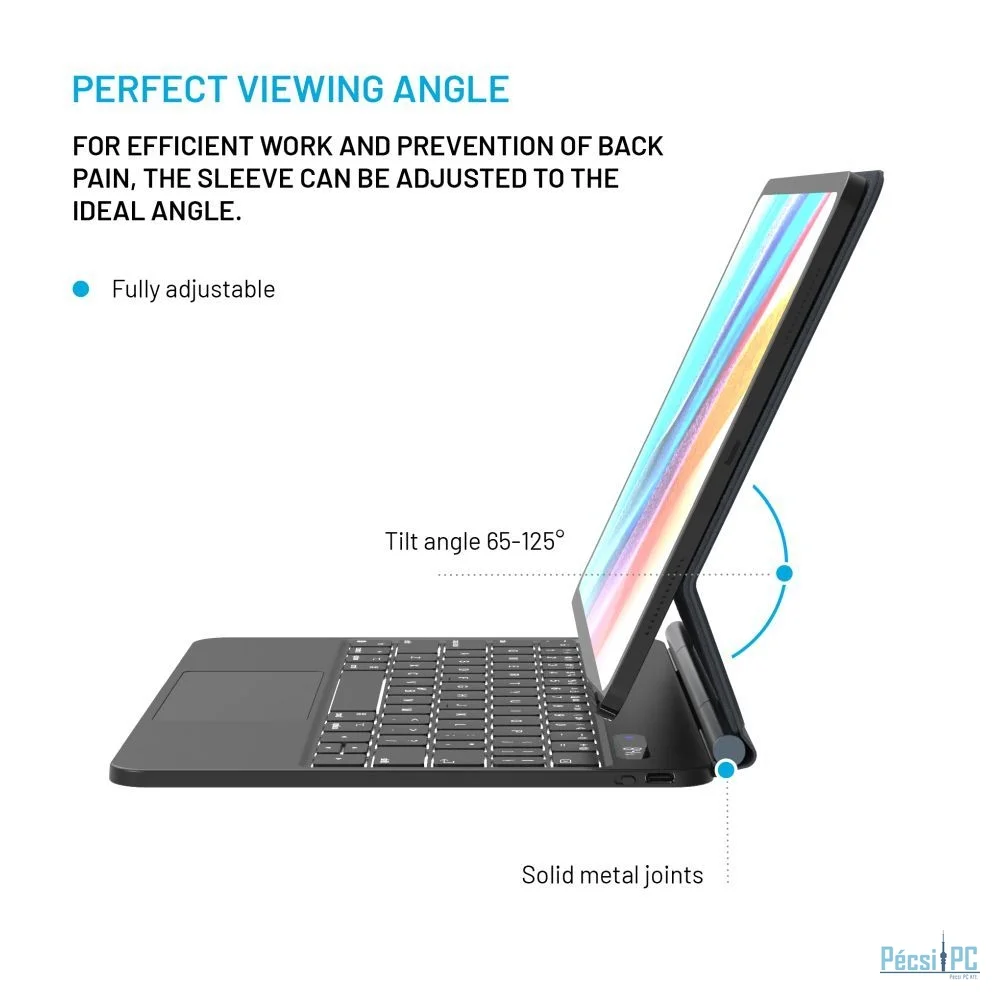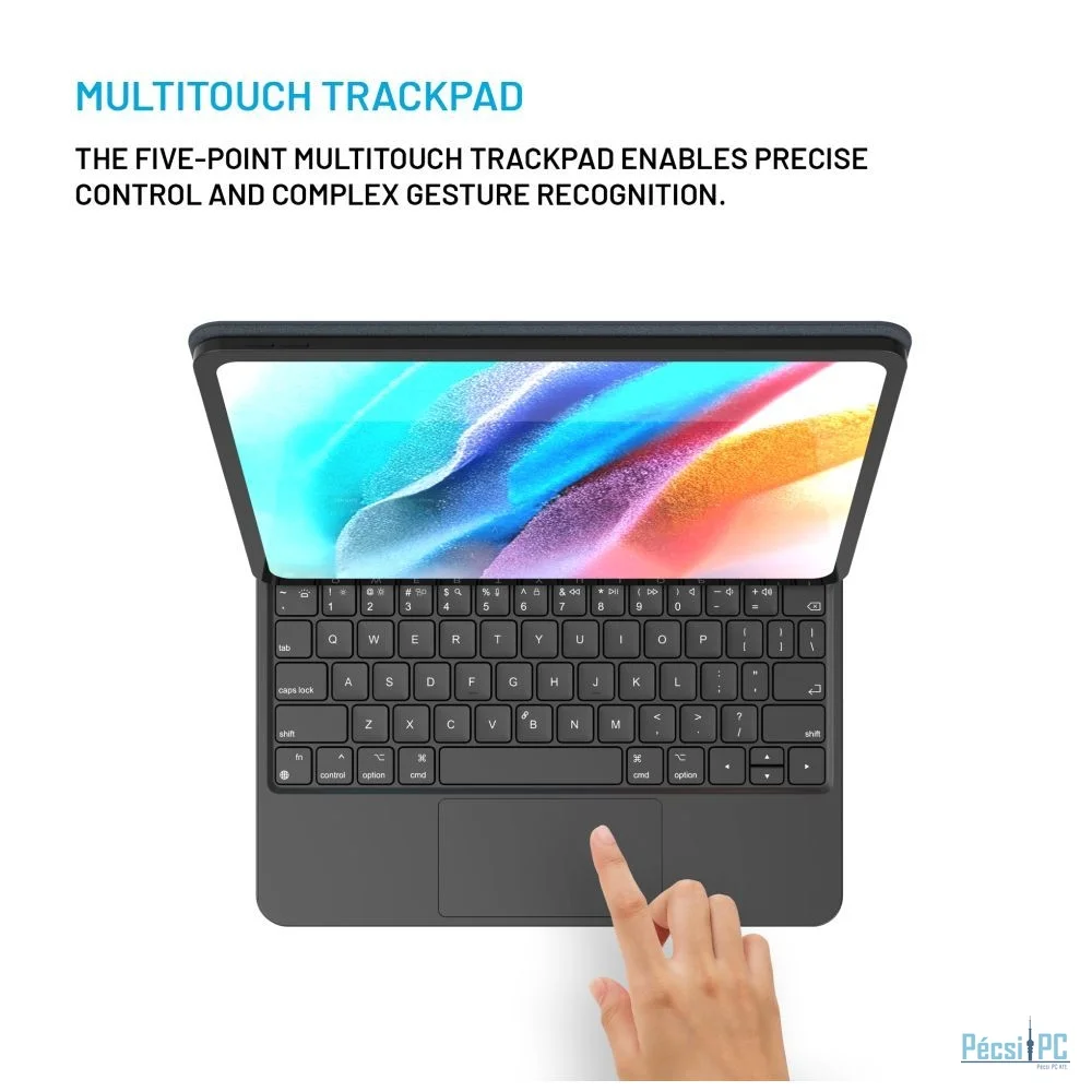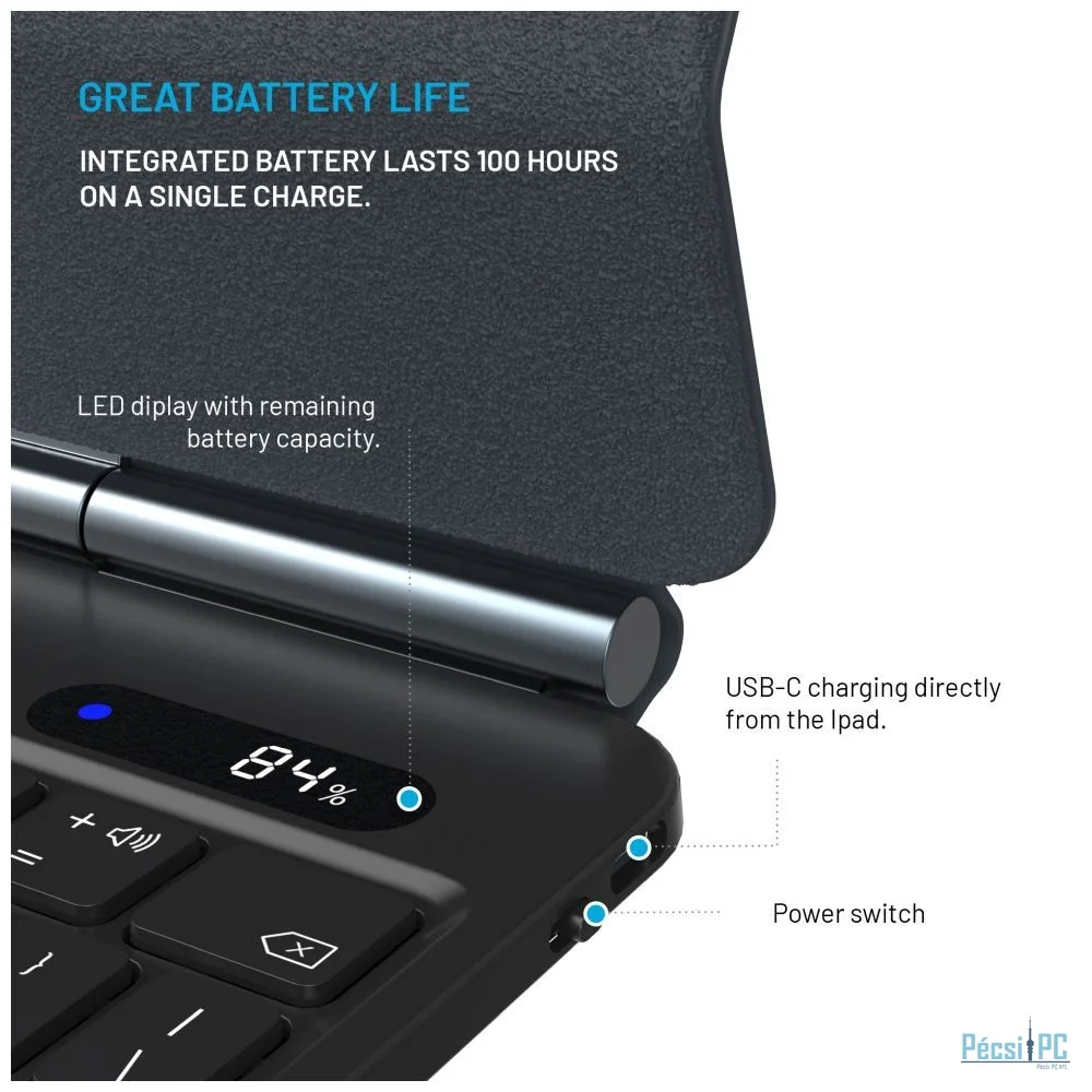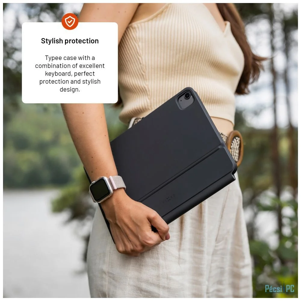 A FIXED Typee tok egyesíti a vezeték nélküli billentyűzetet és a hibátlan trackpadet az iPad táblagép védelmével. A billentyűzet ötpontos multi-touch trackpaddel és funkcióbillentyűkkel rendelkezik, amelyek támogatják az iPadOS-specifikus gesztusokat és billentyűzetparancsokat a MacBook-szerű felhasználói élmény érdekében. A táblagép mágnesek segítségével egyszerűen rögzíthető a tok belsejéhez, amely minden oldalról védelmet biztosít a behelyezett készüléknek. A billentyűzethez Bluetooth-on keresztül történő csatlakoztatás kényelmes használatot biztosít. A tok kiváló minőségű és könnyű anyagokból készült, amelyek elegáns megjelenést kölcsönöznek a készüléknek, ugyanakkor megbízható védelmet nyújtanak a karcolások, ütődések és egyéb sérülések ellen. A billentyűzet hosszú, akár 100 órás akkumulátor-üzemidővel rendelkezik, és USB-C kábellel egyszerűen feltölthető közvetlenül a táblagépről. A 65° és 125° között állítható dőlésszög lehetővé teszi, hogy megtaláld az ideális pozíciót a munkához vagy filmnézéshez. További praktikus funkciók az automatikus alvó- és ébresztési mód, valamint az információs LCD-kijelző. Az angol billentyűkiosztású billentyűzet kompatibilis az Apple iPad Pro 11" (M4, 2024) készülékkel. A billentyűzet tok még erősebb és sokoldalúbb eszközzé teszi iPad készülékedet, amely minden lépésedben elkísér.
