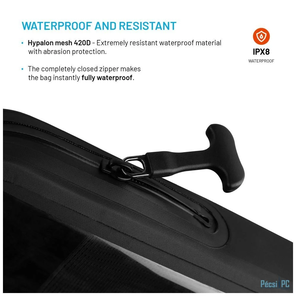 A kompakt, vízálló FIXED Dry Case tok megvédi személyes tárgyait a nedvességtől, homoktól vagy szennyeződésektől a szabadtéri tevékenységek során vagy a vízparton. A főzseb elegendő helyet biztosít minden lényeges dolognak, beleértve a legfeljebb 7" képátlójú telefont is, amelyet egy belső hálós zseb biztonságosan elválaszt a többi dologtól. Az átlátszó érintős részek biztosítják, hogy mindig áttekintheti a tartalmat, miközben kényelmesen vezérelheti telefonját anélkül, hogy azt ki kellene vennie a tokból. A felhasznált Hypalon hálós 420D anyag rendkívül ellenálló a vízzel, a kopással és a szakadással szemben, így a tok élettartama még erős igénybevétel esetén is meghosszabbodik. A biztonságos zárást vízálló cipzár biztosítja, amelyet csak szorosan meg kell húznod, és a tok azonnal lezárul. Az IPX8 minősítésnek köszönhetően még akkor is megvédi a tartalmát, ha akár 5 méteres mélységig, egy órán keresztül merül el. A kényelmes viselet érdekében a táska egy állítható, akár 145 cm hosszúságú pánttal van ellátva, amelyet könnyedén az Ön igényeihez igazíthat.