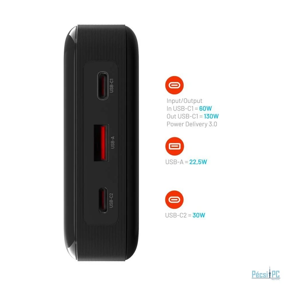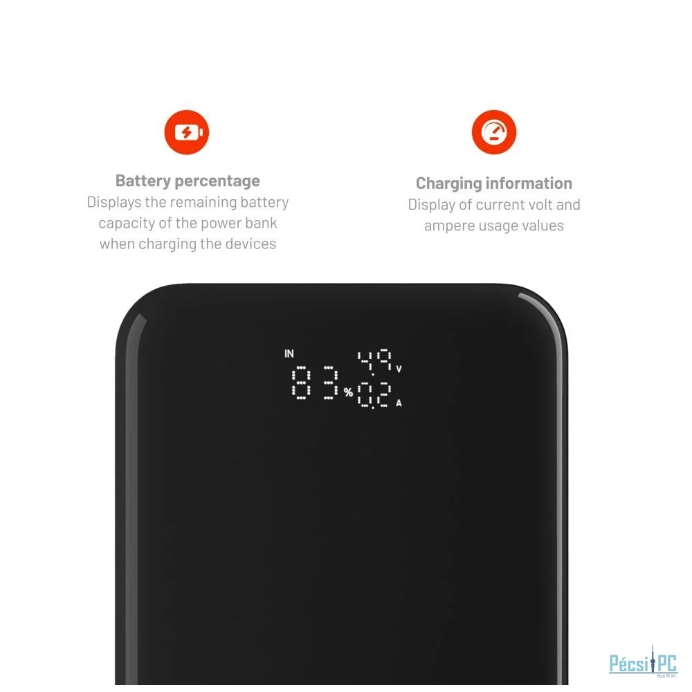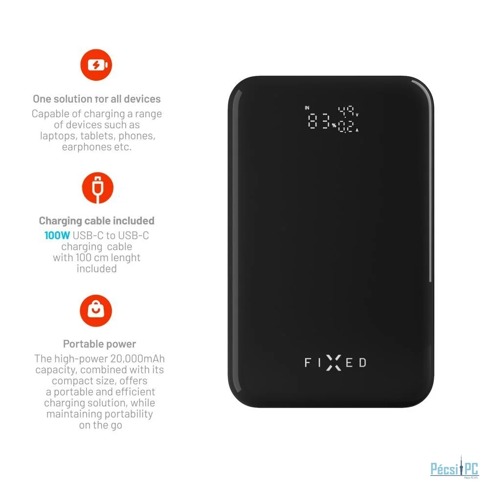 FIXED Zen 20 Pro powerbank LCD kijelzővel, 20,000 mAh, PD3.0, kimenetek:2x USB-C + 1x USB-A, szürke