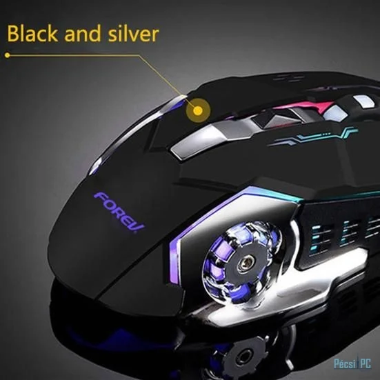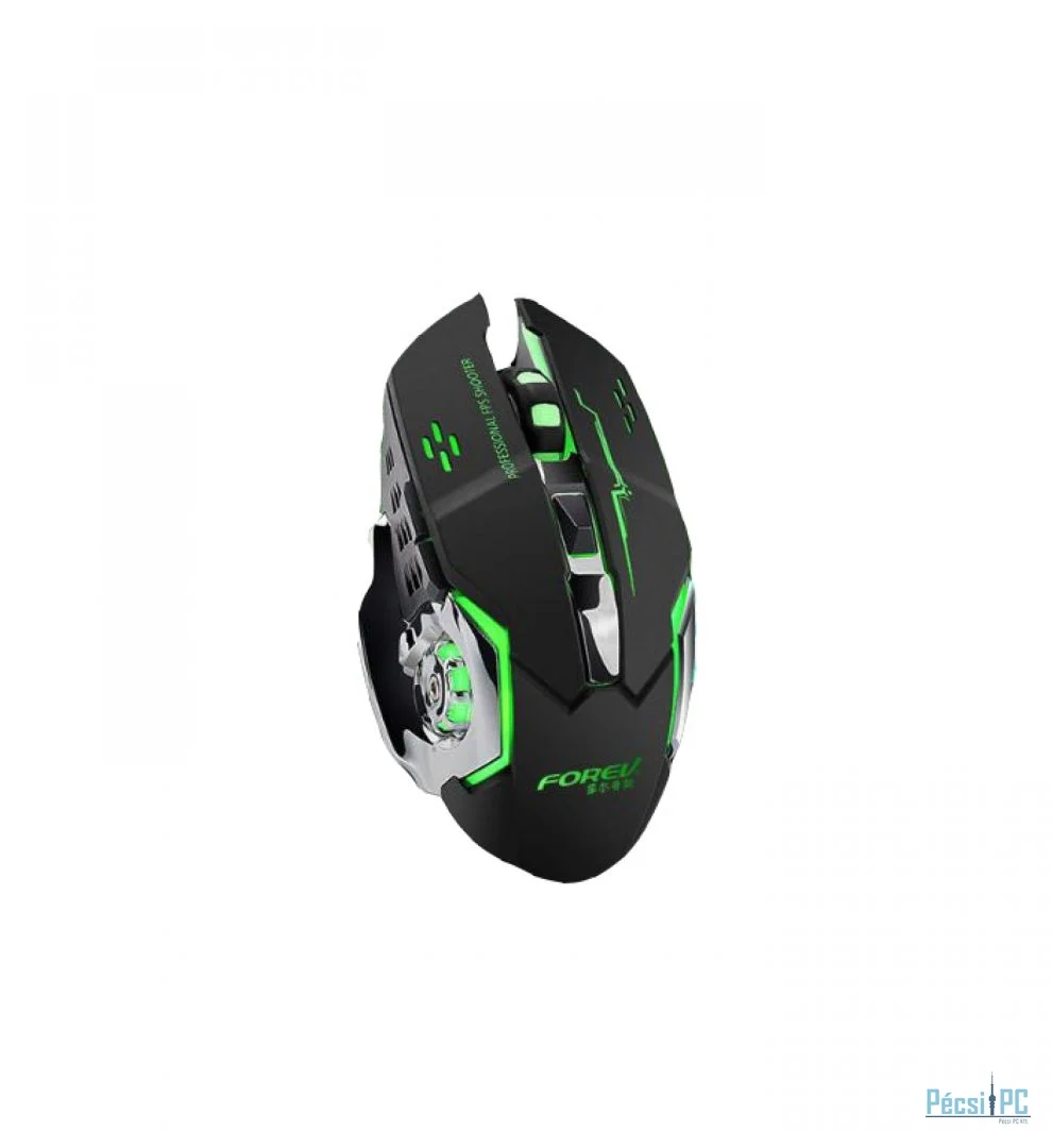 Vezeték nélküli, Wireless 2,4GHz, Optikai, 3200DPI, Black, Újratölthető, RGB, Gamer