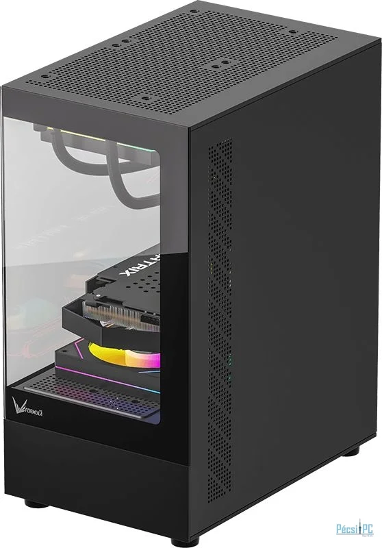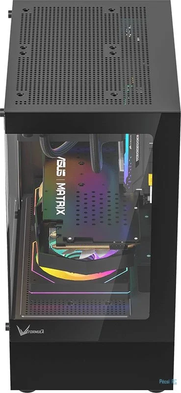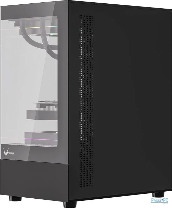 microATX, Black, 1x3,5", 1x2,5", 1xUSB3.0, 1xUSB Type-C, Audio, Táp nélkül, 452x356x242mm, Tempered glass window