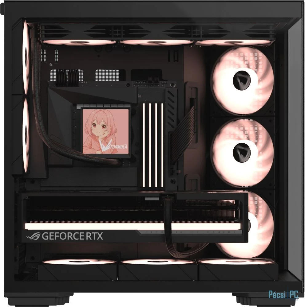 E-ATX, Black, 3x3,5", 2x2,5", 1xUSB3.0, 1xUSB Type-C, Audio, Táp nélkül, 458x453x290mm, Ventilátor:5x12cm, Tempered glass window, RGB, Gamer