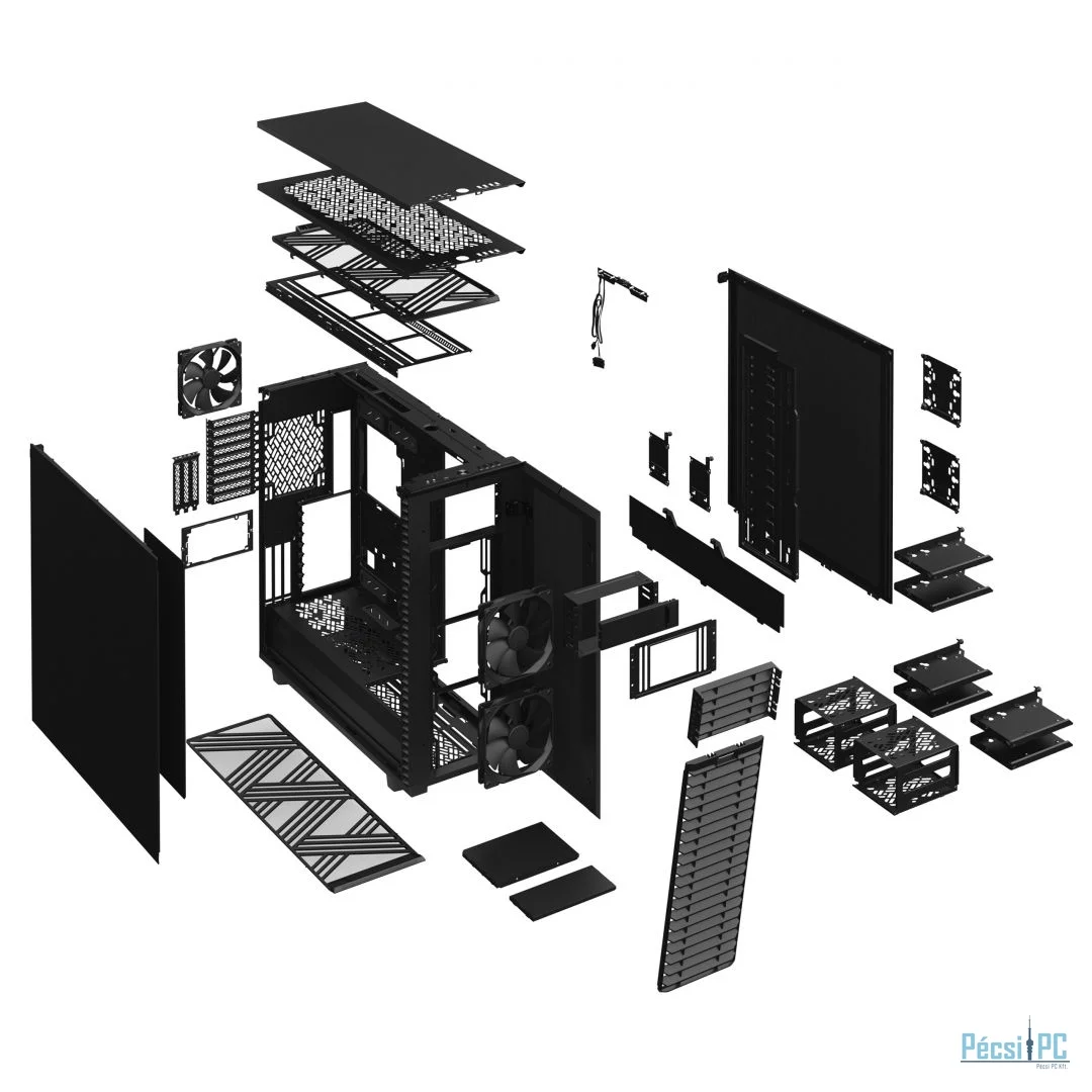 E-ATX, Black, 2x5,25", 6x3,5", 2x2,5", 2xUSB2.0, 2xUSB3.0, 1xUSB Type-C, Audio, Táp nélkül, 604x240x566mm, Ventilátor:3x14cm