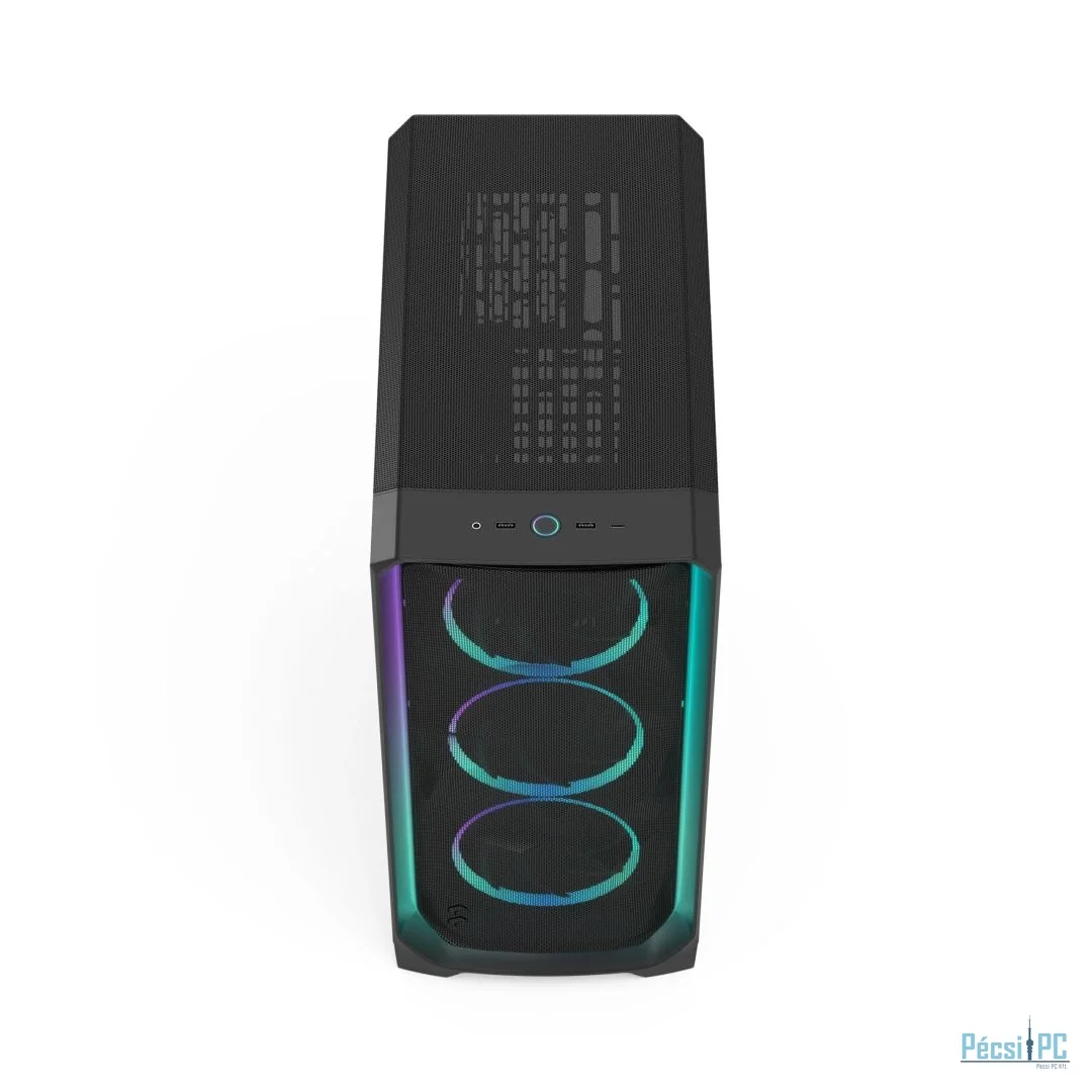 E-ATX, Black, 2x3,5", 4x2,5", 2xUSB3.0, 1xUSB Type-C, Audio, Táp nélkül, 433x229x507mm , Ventilátor:3x14cm, Tempered glass window, RGB, Gamer
