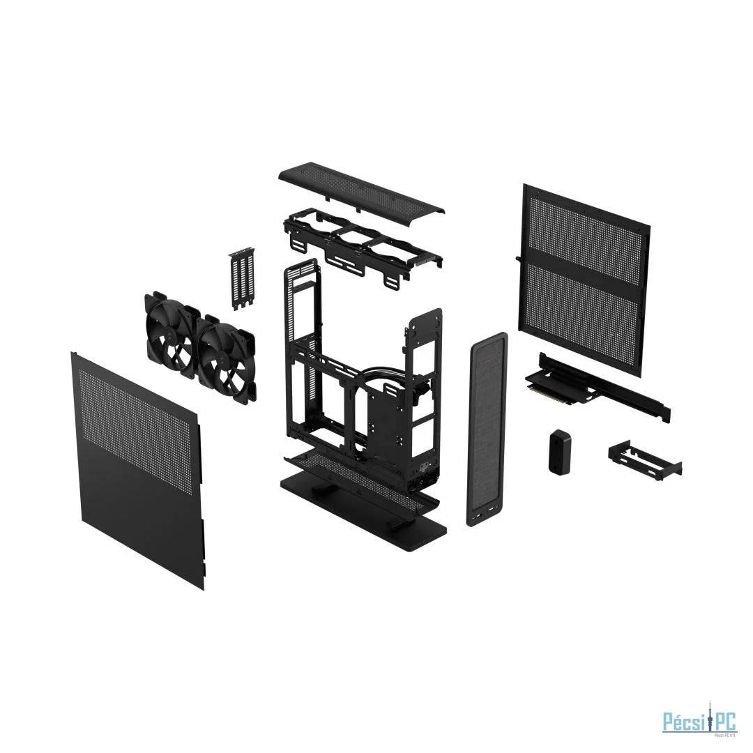 Mini-ITX, Black, 4x2,5", 2xUSB3.0, 1xUSB Type-C, Audio, Táp nélkül, 355x95x375mm, Ventilátor:2x14cm