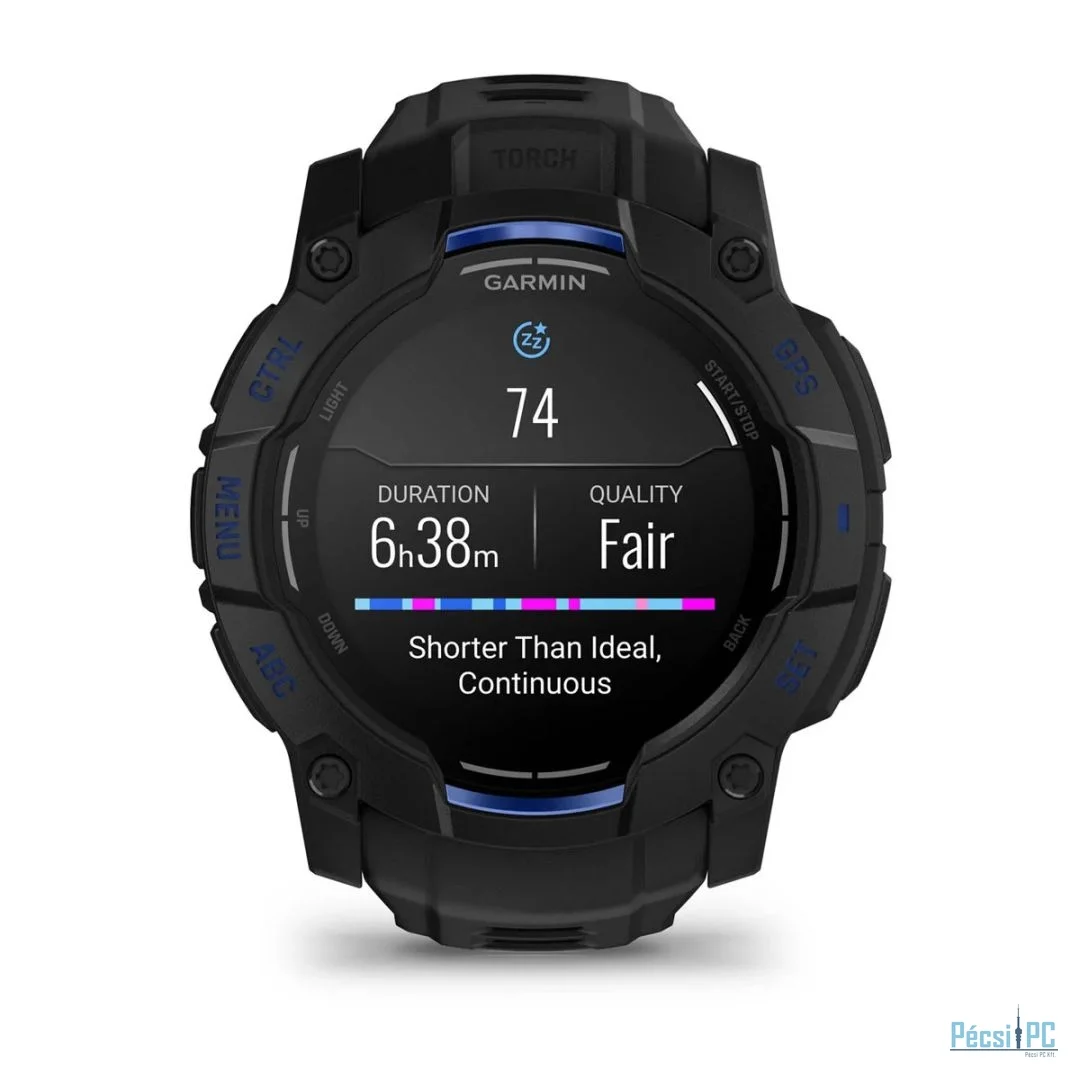 Kijelző mérete: 1,3", iOS, Android, >1 hét, Vízálló, 10 ATM, Wi-Fi, Bluetooth, GPS, Gyroscope, Pulzusmérő, Gyorsulásmérő, Üzenet és hívás kezelése, Alvás figyelés, Magasságmérő, Elégetett kalória kijelzés, Zene vezérlése, Tok mérete: 47x47x14,5mm