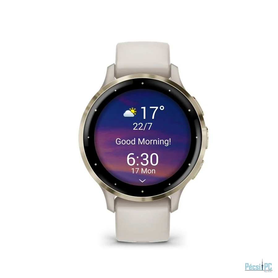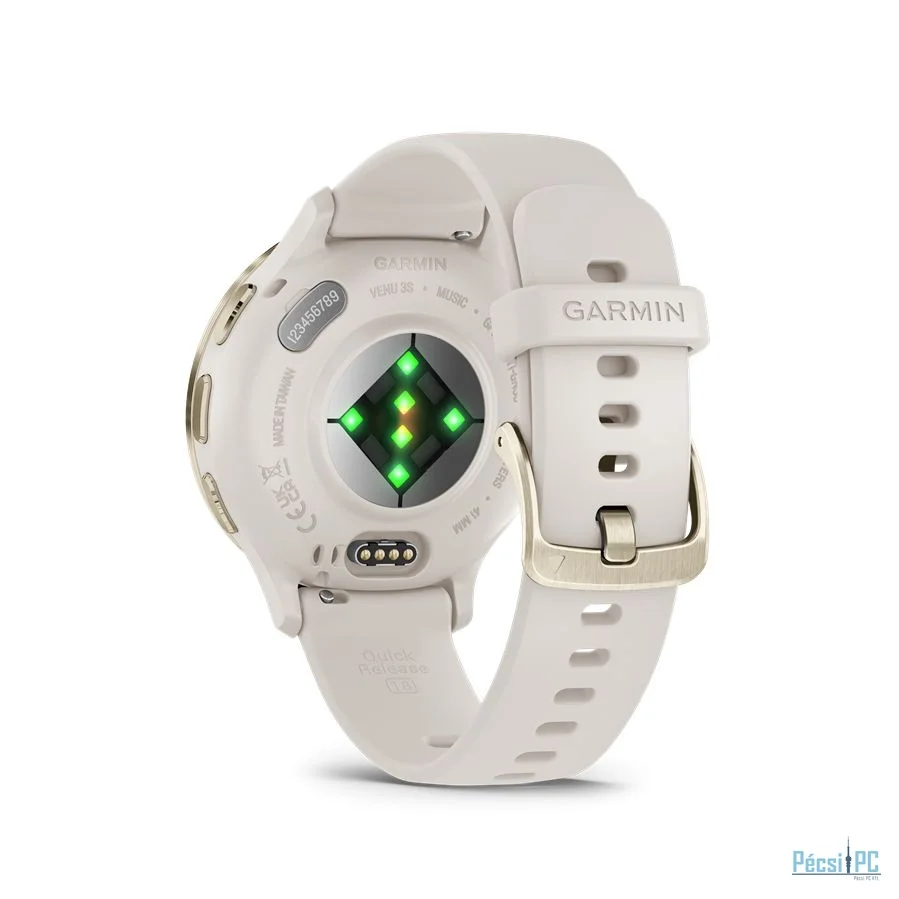 Garmin Venu 3S Soft Gold Stainless Steel Bezel with Ivory Case and Silicone Band
