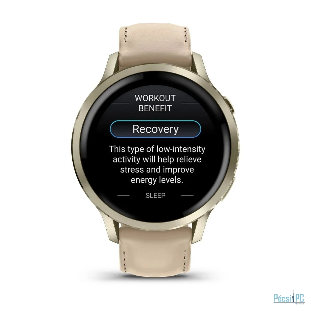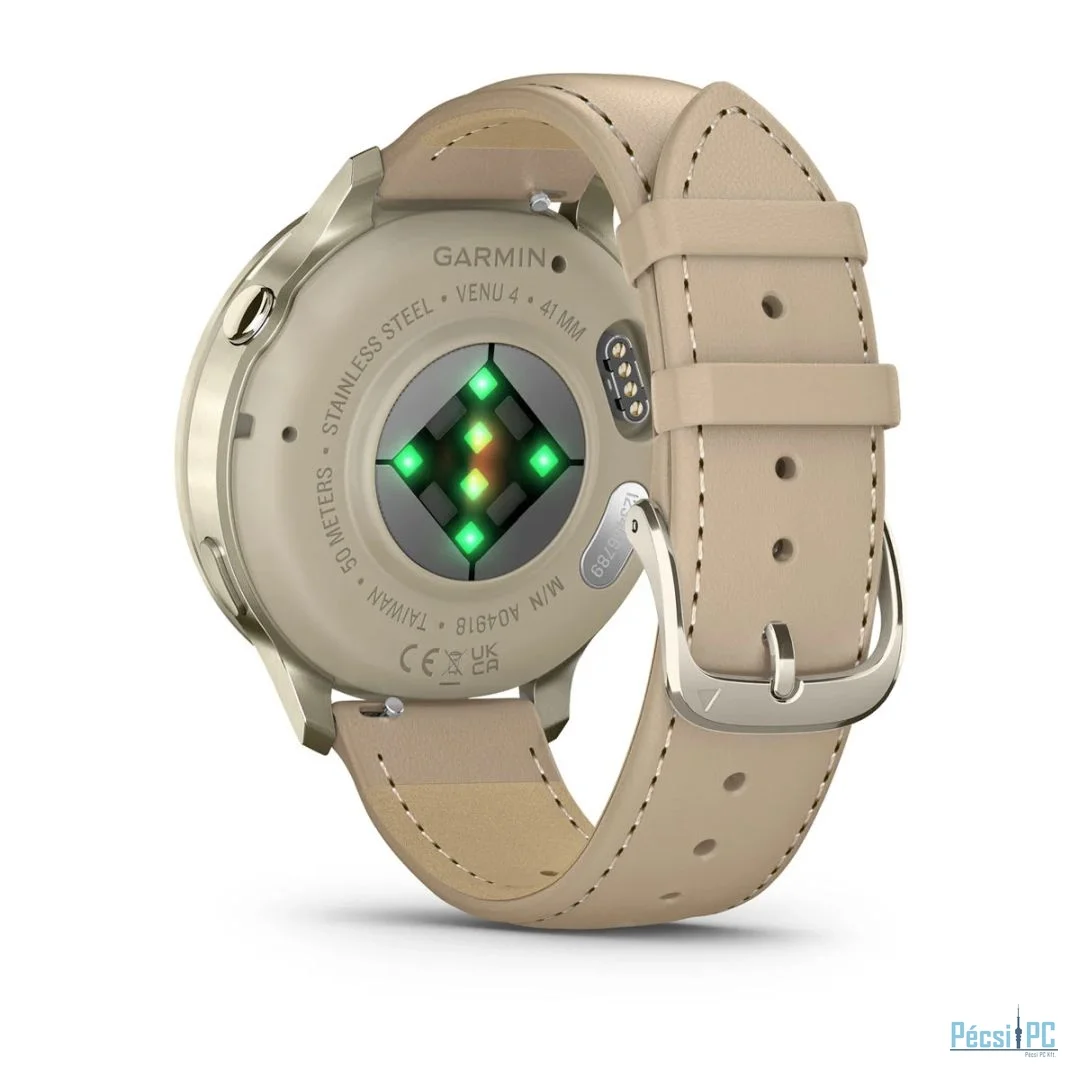 Garmin Venu 4 41mm Lunar Gold with Sand Leather Band