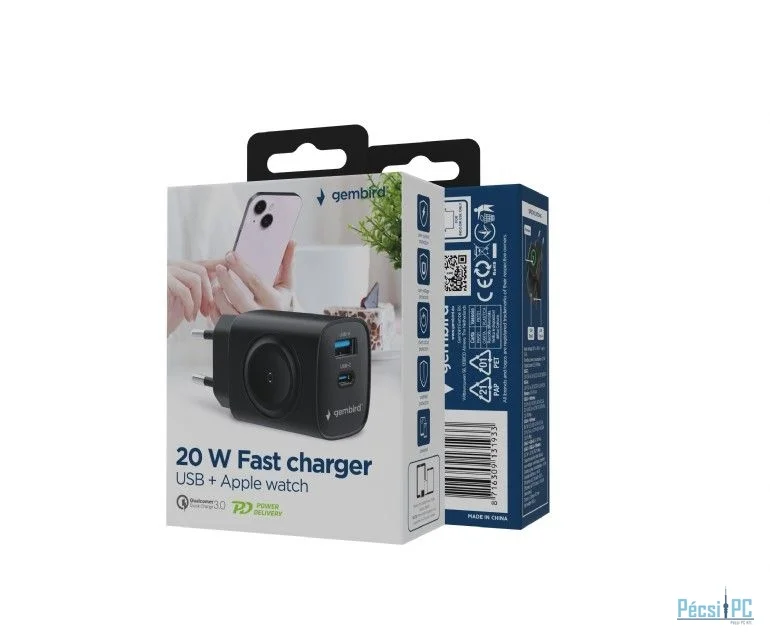 Gembird 2-in-1 20W Apple Watch + phone fast charger Black