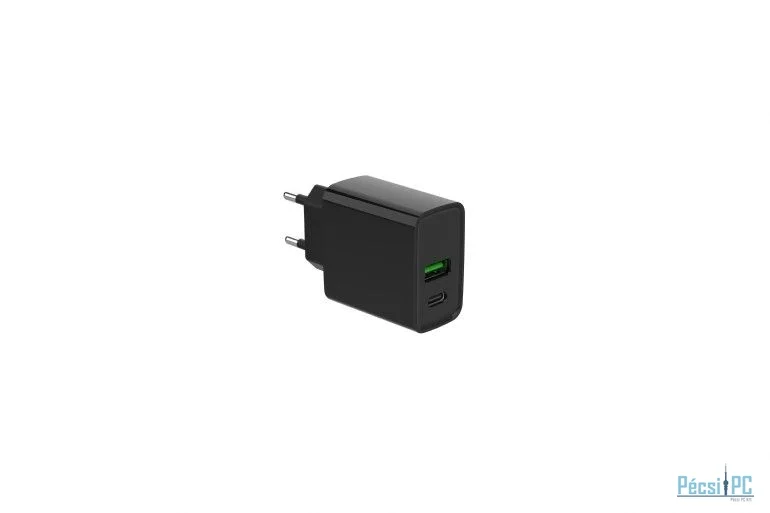 Adapter, 1xUSB-A, 1xUSB-C, 5V/9V/12V, 2,2A, 20W, QC, PD, Black