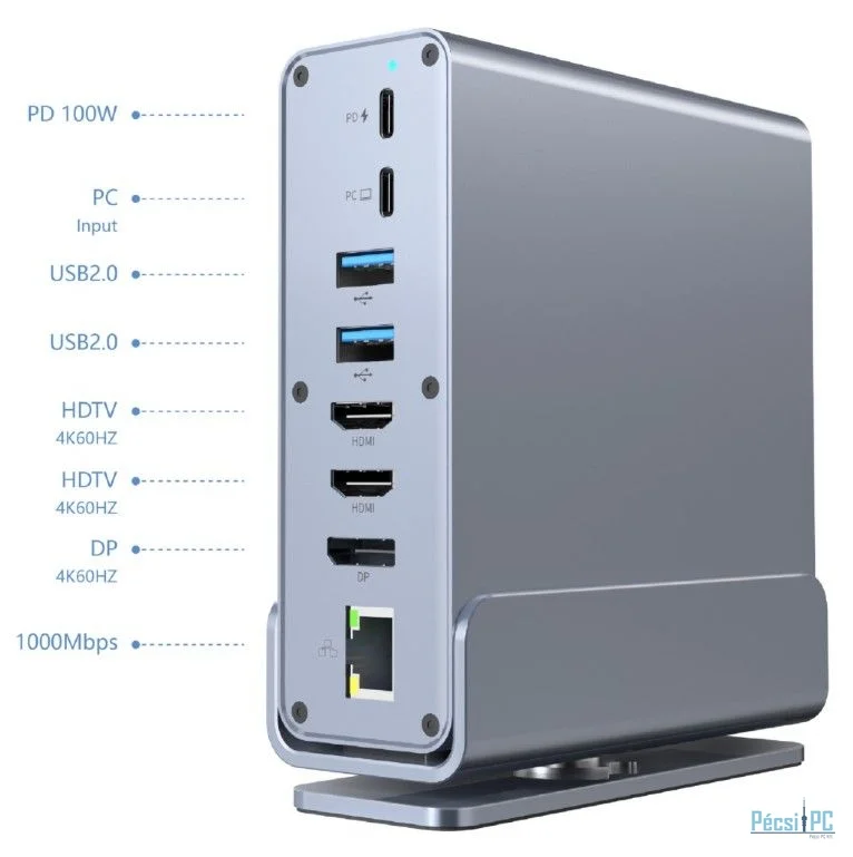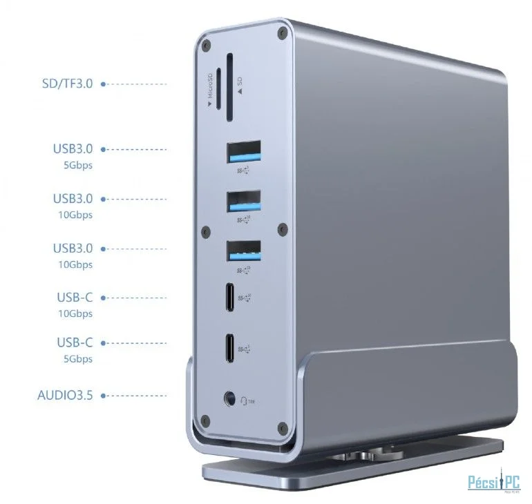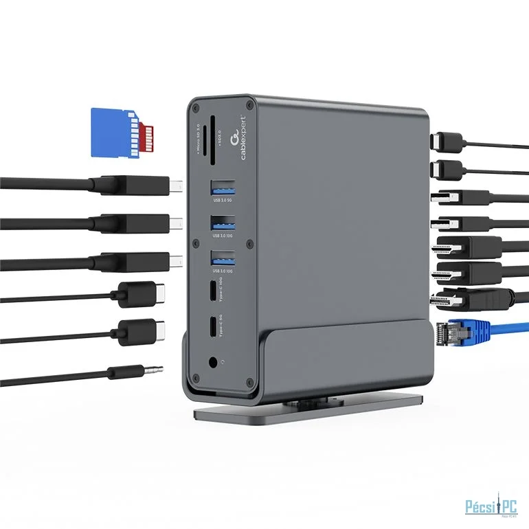 Csatlakozás USB-C, 5xUSB-A, 3xUSB-C, 2xHDMI, 1xDisplayport, RJ45, Kártyaolvasó