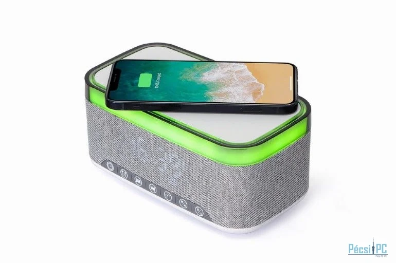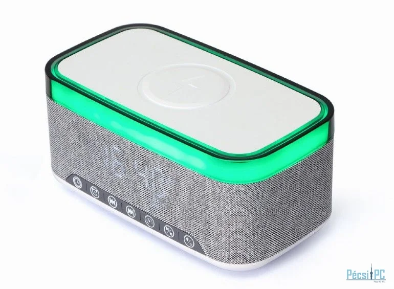 Gembird DAC-SPKBT-QC15-GR Digital alarm clock with speaker wireless charging function White/Light Grey