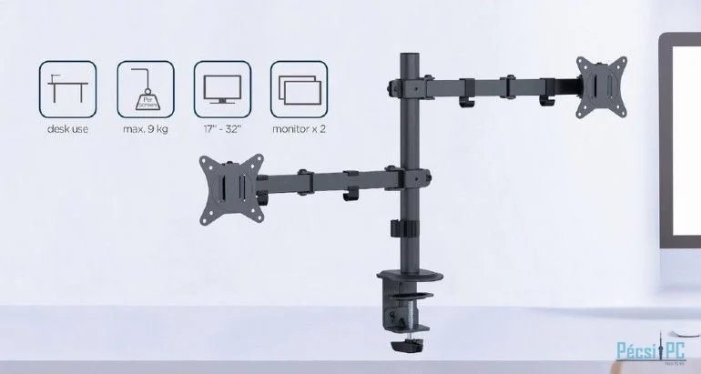 Gembird MA-D2-03 Adjustable desk mounted double monitor arm 17”-32” Black