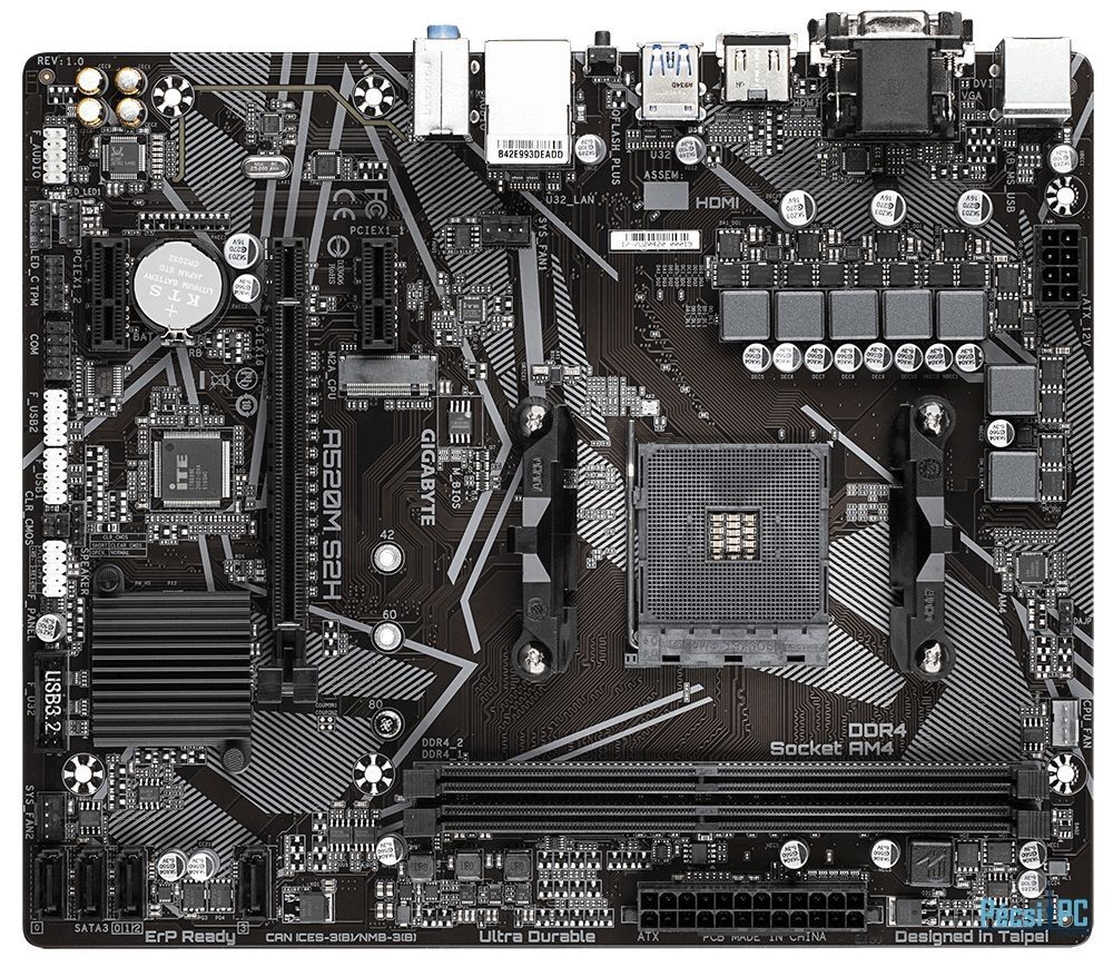 AM4, AMD A520, 2xDDR4, Max:3200MHz, Max:64GB, 1xPCIE16, 2xPCIE1, 4xSATA3, RAID, 2xUSB, 4xUSB3.1, DVI, VGA, HDMI, DisplayPort, PS2:1 db, 7.1, Gigabit, 1xM.2, Micro-ATX