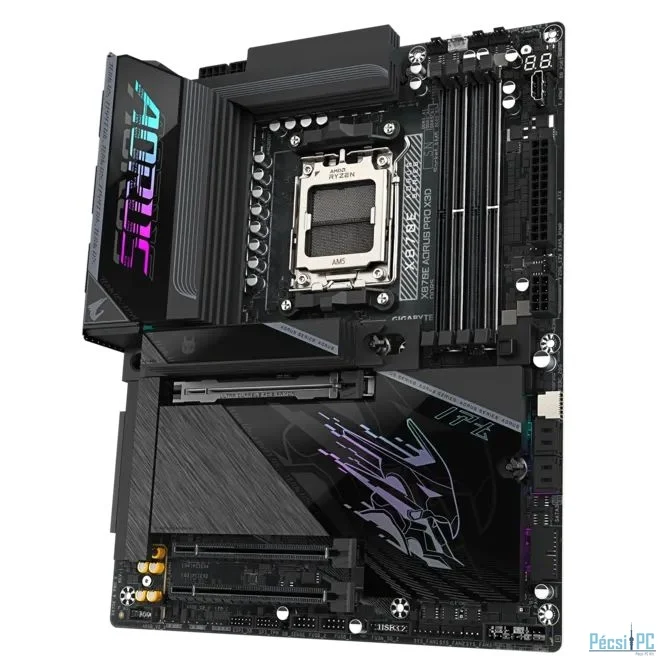 AM5, AMD X870E, 4xDDR5, Max:5200MHz, Max:256GB, 3xPCIE16, 4xSATA3, RAID, 8xUSB3.2, 2xUSB3.2C, 2xUSB4.0C, HDMI, 7.1, SPDIF optikai kimenet, 2.5Gb/s LAN, WiFi, Bluetooth, 4xM.2, ATX, RGB, Gamer