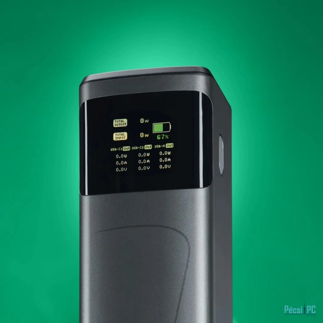 Ezzel a kiegészítő akkumulátorral nem találgatni kell, hanem a kijelzőn keresztül pontosan megtudhatja, mennyi energia fogy és mennyi van még hátra. A százalékos érték megmutatja, hogy mennyi akkumulátorkapacitás maradt magában a tápegységben. A kijelzőn látható az egyes töltőaljzatok kimeneti teljesítménye és a teljes teljesítmény wattban. Ez lehetővé teszi, hogy pontosan megtervezze az eszközök töltését útközben, és minden egyes eszközét elegendő energiával lássa el. Mi több: a "High Power" töltés közben egyszerre töltheti a készülékeit.