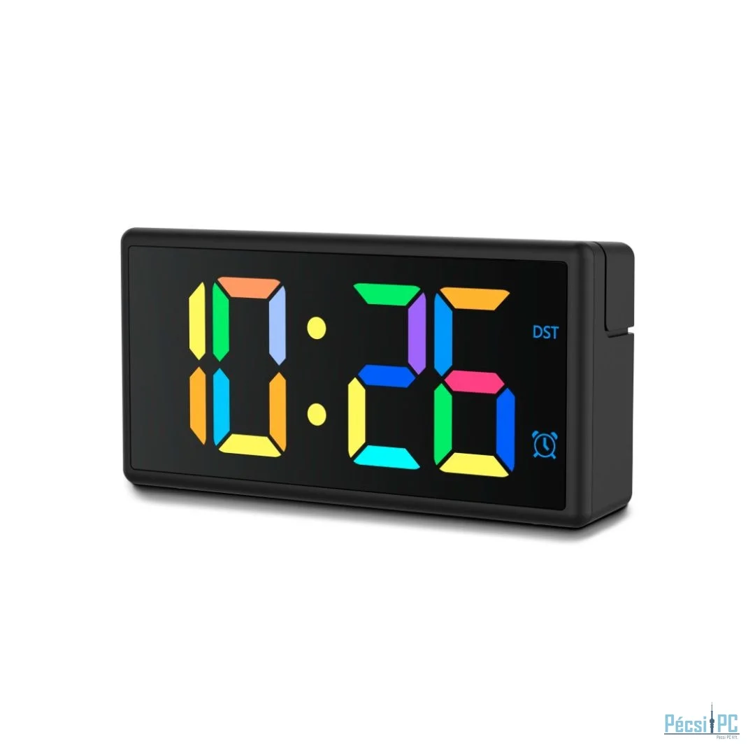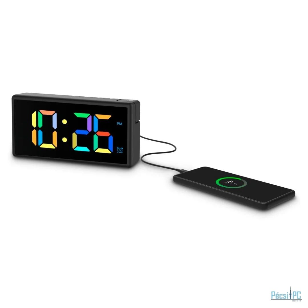 Hama Ibiza Digital Alarm Clock Multi-Colour Display with USB Charging Function Black