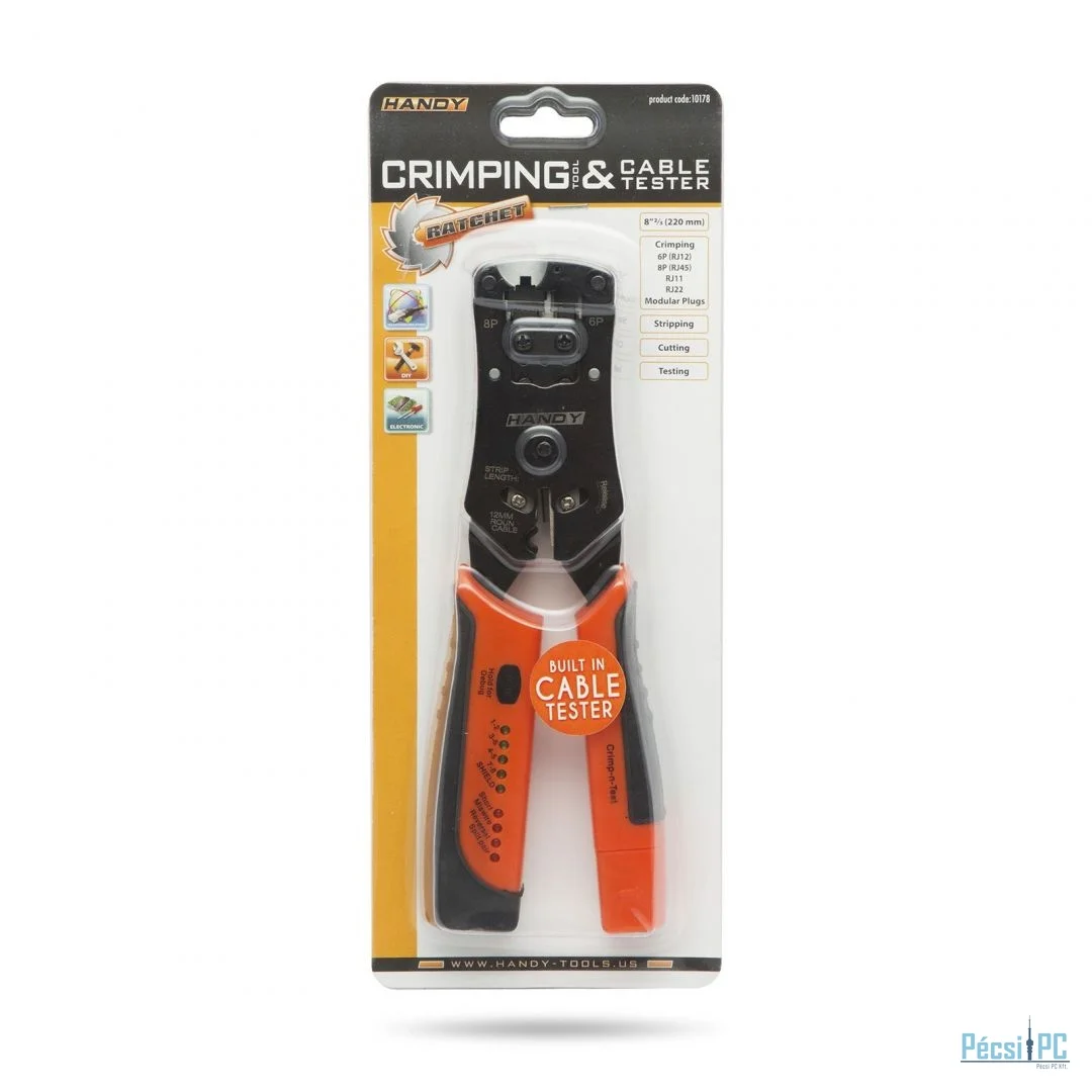 Handy Krimpelő, 6P, 8P racsnis, kábelteszter