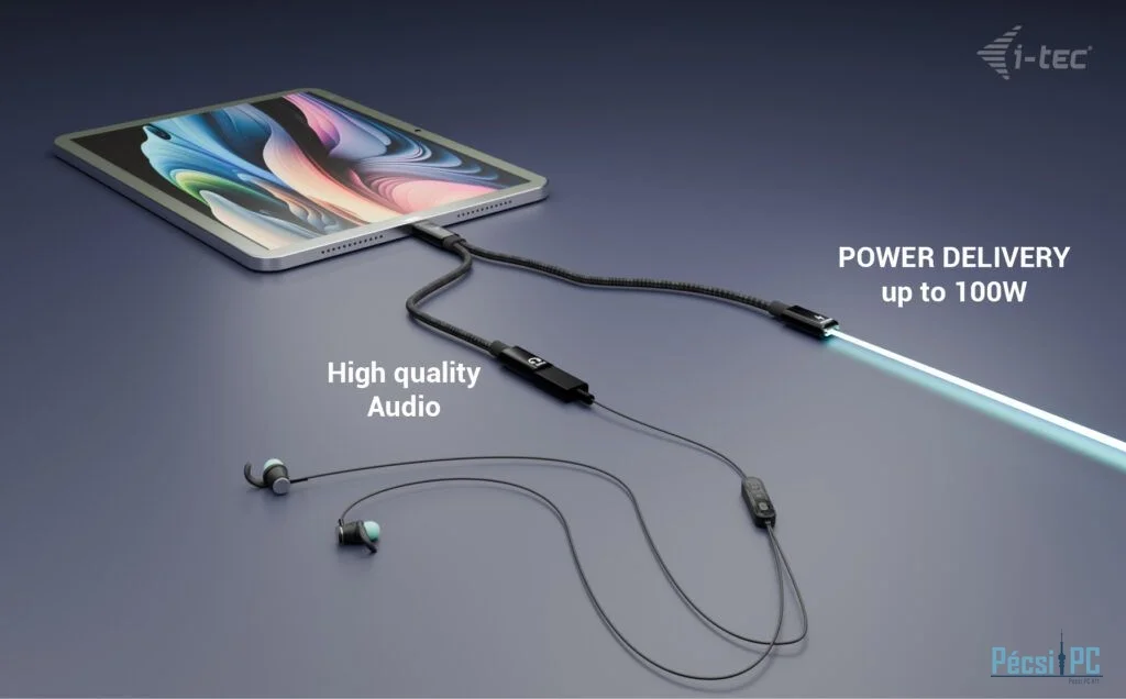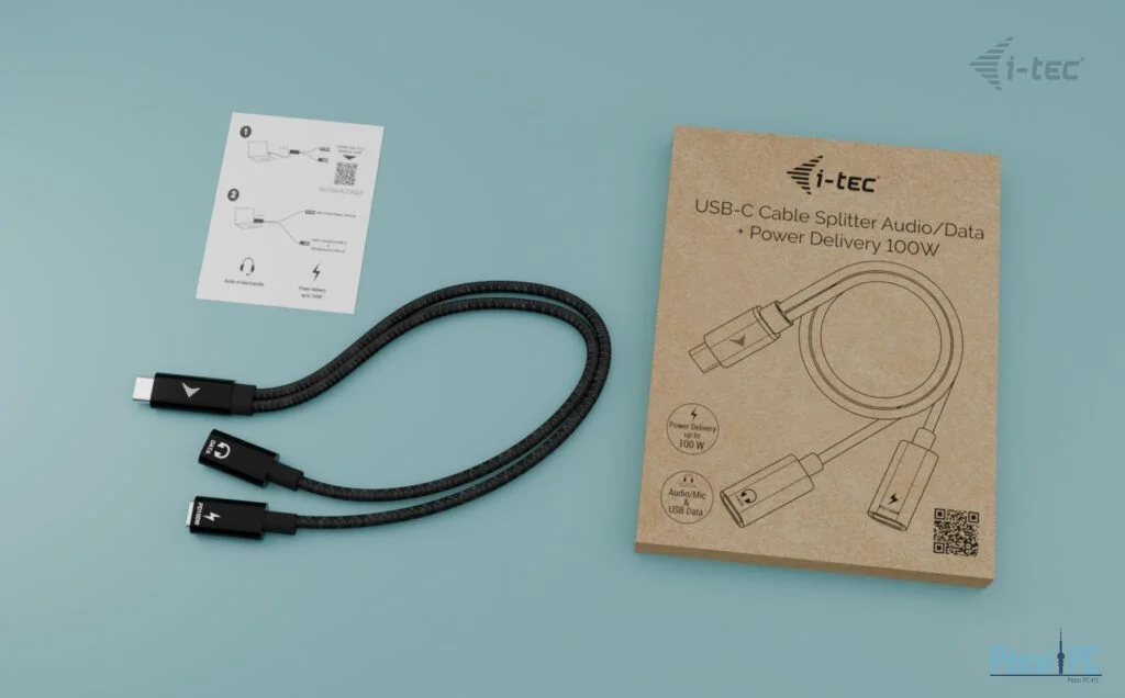 I-TEC USB-C Cable Splitter Audio/Data + Power Delivery 100W