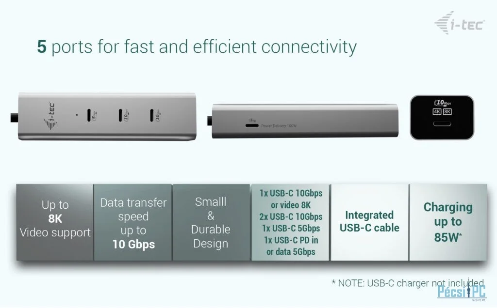 I-TEC USB-C Charging Metal HUB 5port with USB-C video 8K + Power Delivery 85W