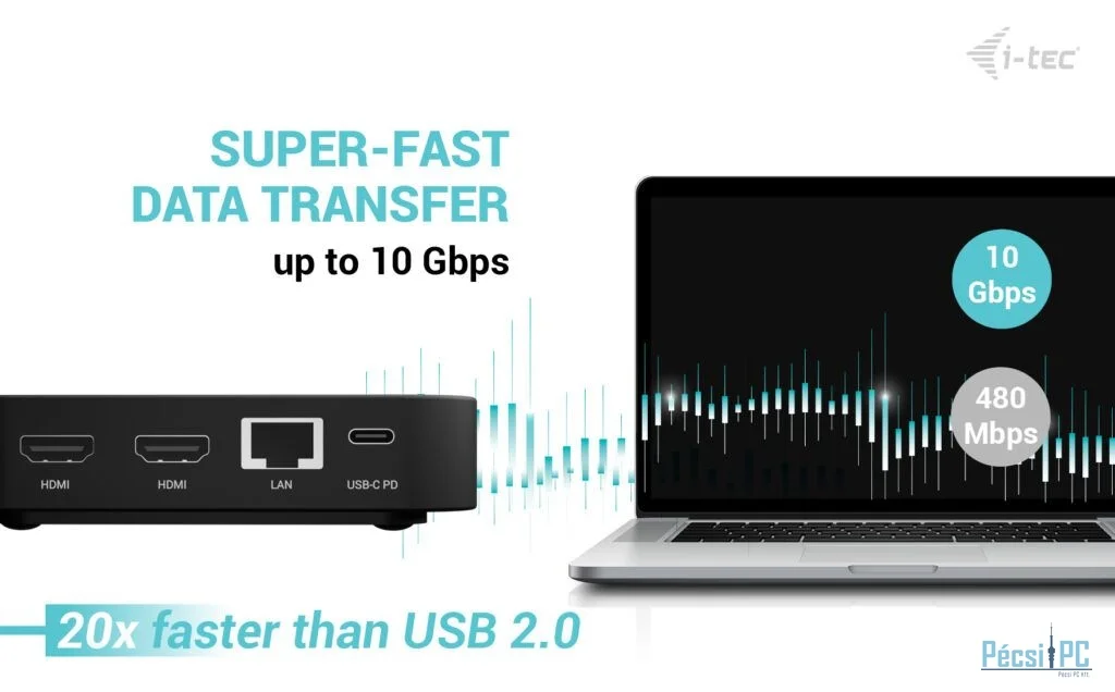 Csatlakozás USB-C, 4xUSB-A, 3xUSB-C, 2xHDMI, RJ45