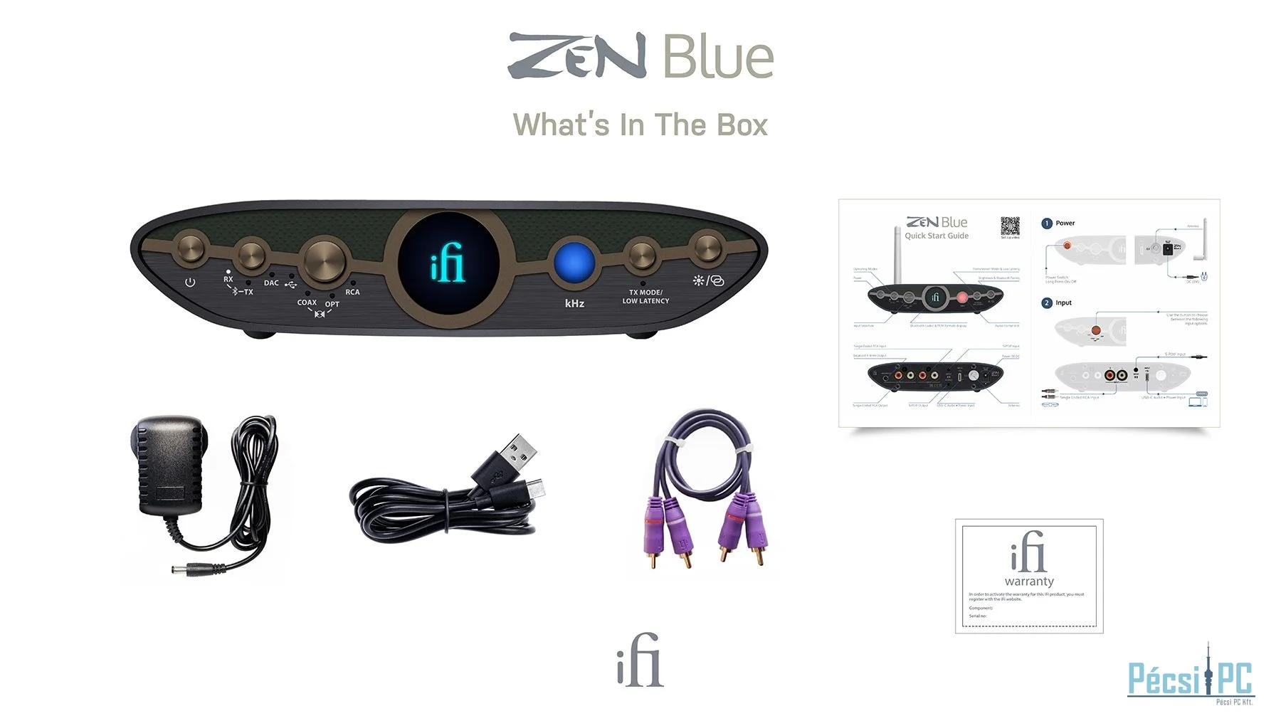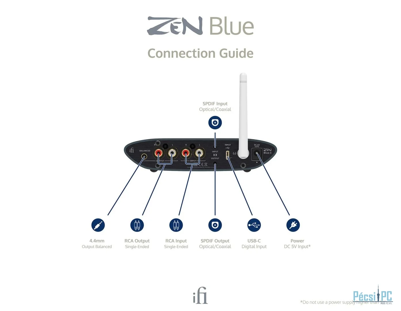 A ZEN Blue 3 teljesen vezetékes DAC-ként is képes működni, 96 kHz/24Bit hangot kínál USB-C-n keresztül, vagy 192 kHz/24Bit hangot SPDIF-en keresztül, amelyet 4,4 szimmetrikus vagy RCA analóg kimeneten keresztül lehet kimeneti.