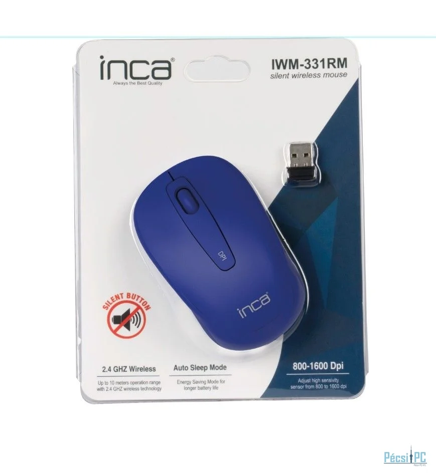 Vezeték nélküli, Wireless 2,4GHz, Optikai, 1600DPI, Blue, Csendes működés