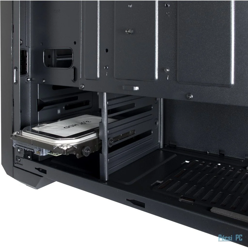 ATX, Black, 2x3,5", 2x2,5", 2xUSB2.0, 2xUSB3.0, Audio, Táp nélkül, 470x215x465mm, Ventilátor:12cm, Tempered glass window, RGB, Gamer