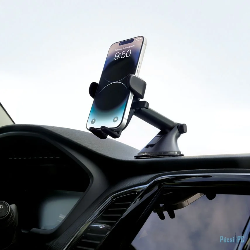 Erős tapadókorong segítségével biztonságosan rögzíthető a műszerfalhoz és a szélvédőhöz.