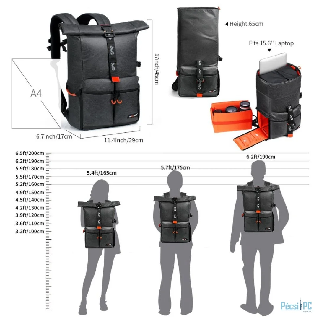 K&F Concept 2-in-1 Camera Backpack Travel 15,6" 20L Waterproof Black