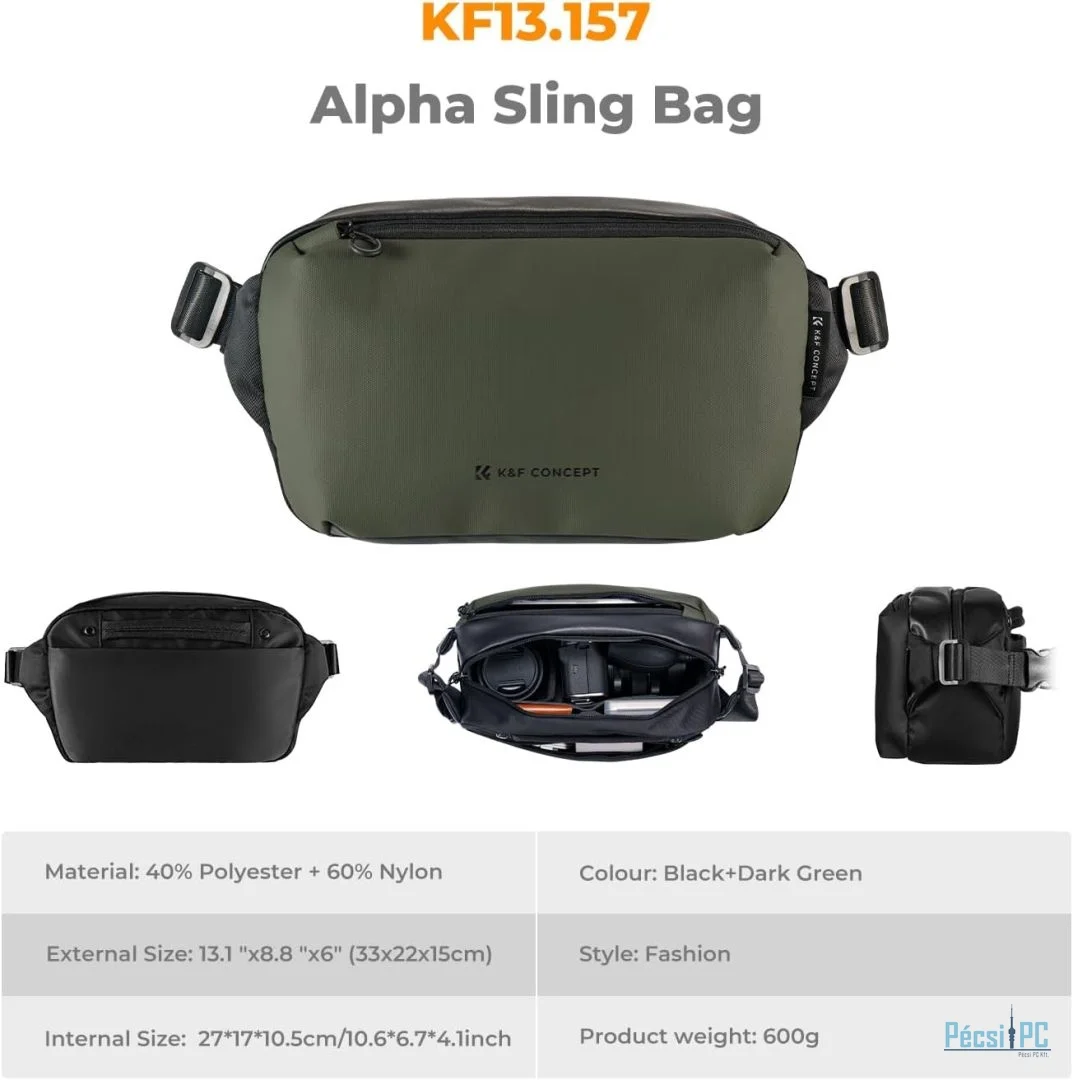 0 értékelés a(z) K&F Concept 2in1 Sling Bag Everyday Shoulder Bag & Photography Camera Backpack 10L Dark Green terméken