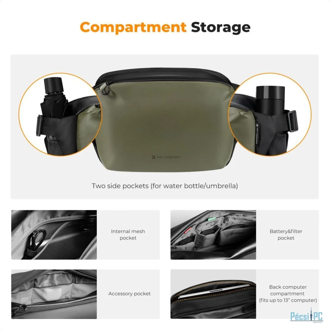 0 értékelés a(z) K&F Concept 2in1 Sling Bag Everyday Shoulder Bag & Photography Camera Backpack 12L Green terméken