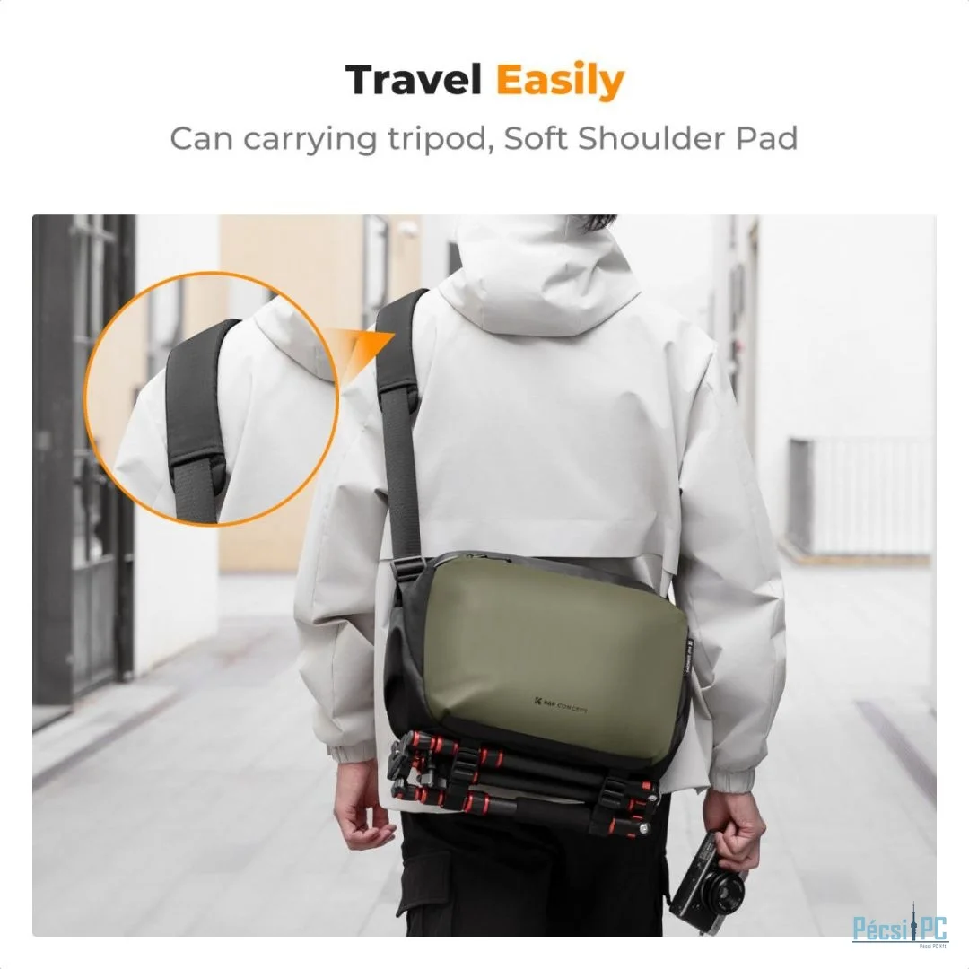 Sokoldalú, többcélú táska kényelmes vállpántokkal: Ez a táska többféleképpen használható, hogy megfeleljen az Ön igényeinek: válltáskaként, kereszttáskaként, melltáskaként vagy kézben hordható táskaként. Emellett kényelmes vállpántokkal rendelkezik a hosszan tartó viselet érdekében. Testreszabható osztók a rugalmas tárolásért: Könnyedén testre szabhatja a belső elválasztókat a rugalmas szervezés érdekében. Akár különböző fényképezőgép-objektívekhez vagy más felszereléshez kell igazodnia, ez a táska a kényelmes használat érdekében alkalmazkodik. Több tartozékzseb a szervezett tároláshoz: A 4 cipzáras zsebbel és 8 becsúsztatható zsebbel ez a táska bőséges helyet biztosít a tartozékok és alapvető dolgok tárolására. Még egy 13"-os MacBook Pro is elfér benne, így felszerelései jól szervezettek maradnak. Lopásgátló dupla cipzáras kialakítás: A táska dupla cipzárfejekkel rendelkezik, amelyek a húzógyűrűkkel együtt zárhatók, így extra védelmet nyújtanak a lopás ellen, miközben úton van. Kompakt állvány hordozhatósága: A táska tartalmaz egy külön szekciót egy kis állvány szállítására is, így ideális választás fotósok vagy utazók számára, akiknek fontos felszerelést kell magukkal vinniük.