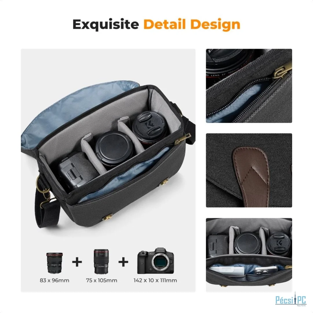 【Tökéletes méret】Kameratáska Külső méretek: Belső méretek: 12,5 "L x 6,2 "W x 8,4 "H; Belső méretek: 12,5 "L x 6,2 "W x 8,4 "H: H: 10.2 "L x 4.3 "W x7 "H. Tökéletesen illeszkedik a DSLR / SLR fényképezőgéphez vagy másokhoz. A fő rekesz 1 DSLR plusz 1-2 objektív számára.Az elülső cipzáras zsebek , akkumulátorok, szűrők, SD kártyák, kábelek és egyéb fényképezőgép tartozékok szervezésére.1 rejtett cipzáras zseb a hátulján a telefon, pénztárca és egyéb apró tárgyak tárolására. 【Customizable Space 】Ez a crossbody fényképezőgép táska két kivehető párnázott elválasztóval rendelkezik, hogy a különböző kamerákat, vakukat, objektíveket és egyéb fényképezőgép felszereléseket elkülönítve és védve tartsa, a belső teret az igényeik alapján beállíthatja. 【Camera Protection】Ez a fényképezőgép táska tartós vintage vászonból készült. A fényképezőgép sling táska 10 mm vastagított PE-habbal van töltve a táska körül, és puha bársonnyal bélelt, hogy megvédje a fényképezőgép felszerelését az ütésektől és az ütésektől. 【Gyors hozzáférés】Ez a SLR fényképezőgép táska mágneses gombos zárást fogad el, a teljes felső nyitás kialakítása és a Sling kialakítás lehetővé teszi, hogy gyorsan forduljon a hátáról előre a DSLR fényképezőgép táska gyors megnyitásához, hogy hamarosan kivegye a fényképezőgépet. Így nem marad le azokról a csodálatos pillanatokról. 【Stílusos fényképezőgép válltáska】Eltávolítható, állítható párnázott vállpánt 27,5 és legfeljebb 52,7 hüvelyk között változhat, személyre szabható. A fényképezőgép keresztbe táskák tökéletesek az utazáshoz, és praktikus funkciókat kínálnak a fotós és a fényképezőgép rajongói számára. Ha bármilyen kérdése van a termékkel kapcsolatban, kérjük, forduljon hozzánk bizalommal.