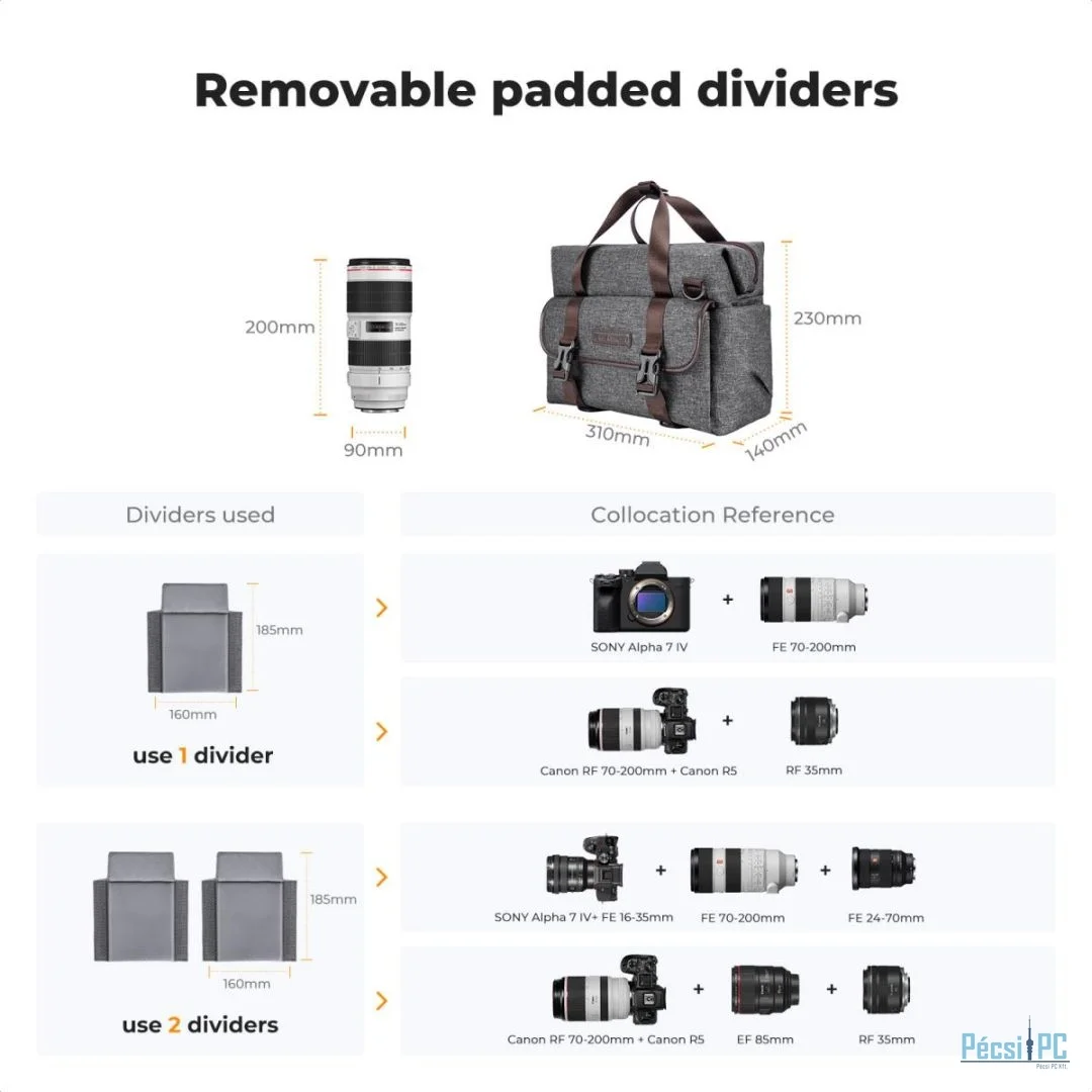 Fotós Válltáska, 310x230x140mm, Dark Grey, Textil