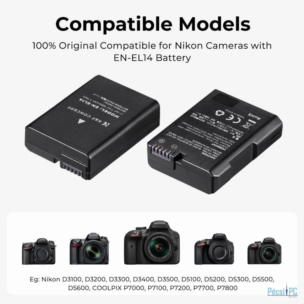 K&F Concept EN-EL14 akkumulátor, 1050mAh