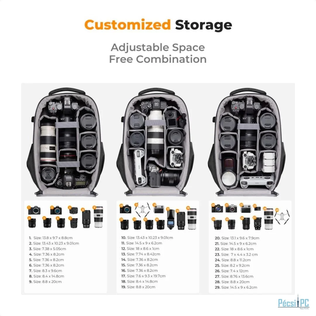 Fotós hátizsák, 320x215x160mm, Black, Poliészter