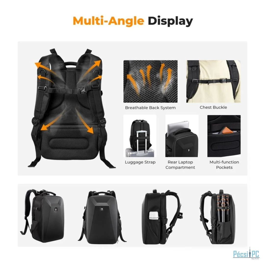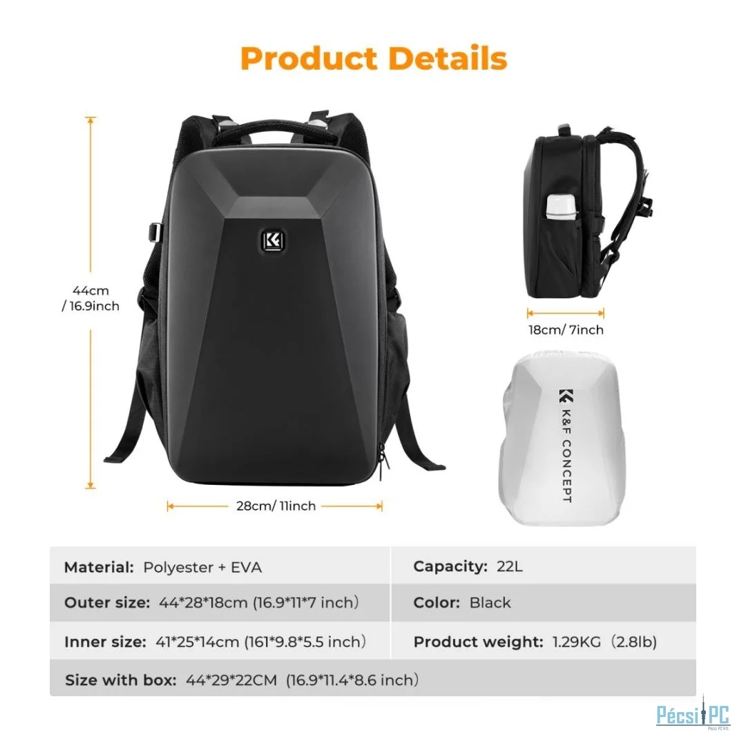 K&F Concept Hardshell DSLR Photography Camera Backpack Black