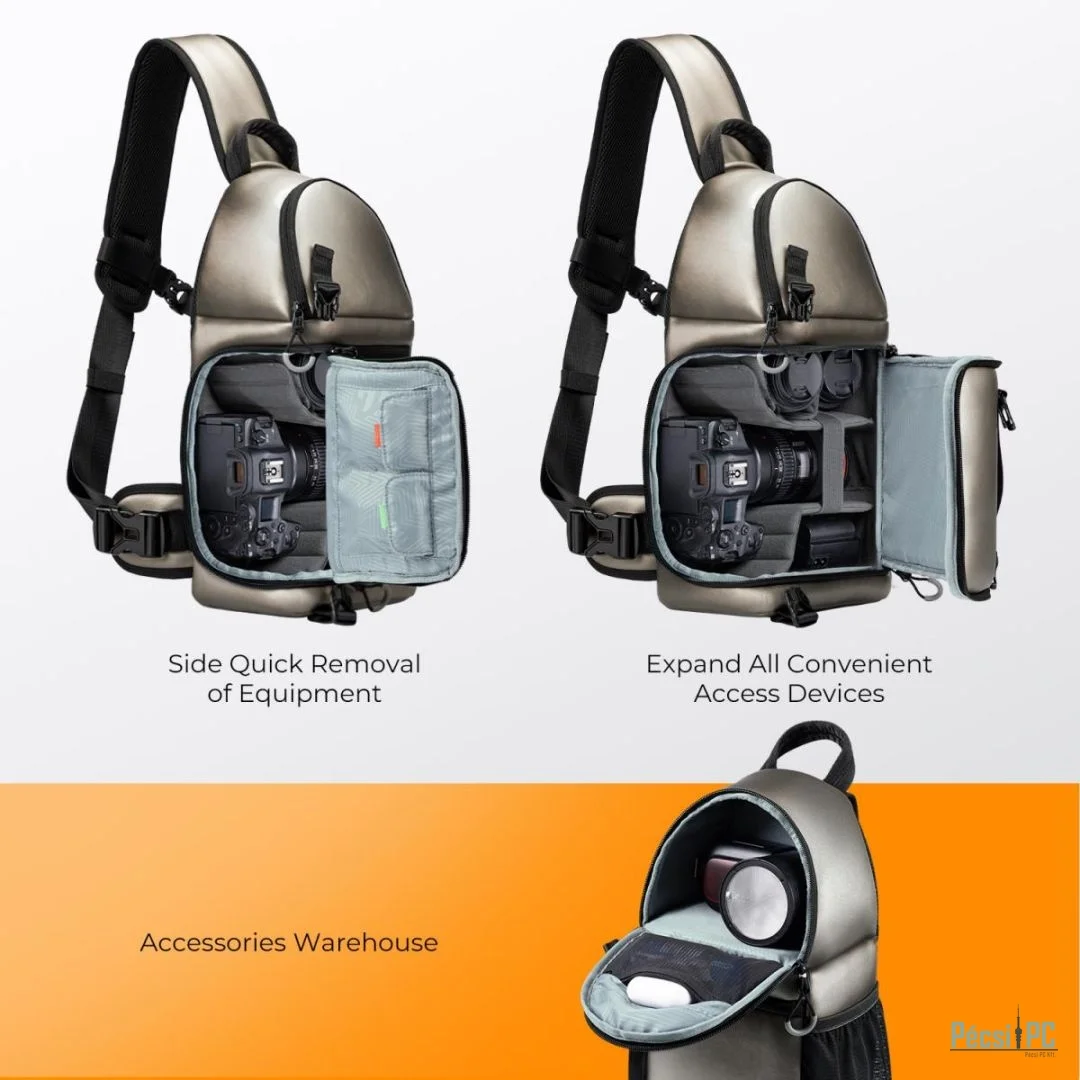 【Méret】 16 x 8 x 6 hüvelyk (L x Sz x H). Ez a tartós Camera Sling Bag több rekeszt tartalmaz a fényképezőgép, a telefon, a tartozékok és a személyes tárgyak számára. Az egyik mellkas táska nagy kapacitással rendelkezik az utazáshoz és a kimenőhöz. 【Biztonságos tárolás】 A Camera Sling Bag speciális oldalsó biztonsági csatja hatékonyan megakadályozza a fényképezőgép kiesését. Az oldalsó nyílásnak köszönhetően a kamera sling hátizsák nagyszerű, hogy gyorsabban és biztonságosabban hozzáférjen. A puha habréteg körülvéve jól megvédheti fényképezőgépét és tartozékait a véletlen ütésektől és karcolásoktól. 【Vékony test megfelelő kapacitással】 A nagyobb alsó tárolótáska (belső mérete: 16 x 8 x 6 hüvelyk) kivehető moduláris betétekkel van elválasztva, hogy különböző objektívek és vakuegységek illeszkedjenek; felső részek a szükséges tartozékok számára. Az egyik oldalon állványtartó található. 【Kényelmes öv részletek】A rugalmas vállpánt 20,8 és legfeljebb 40 hüvelyk között változhat, személyes preferencia szerint állítható. Tökéletes férfiak és nők számára - fényképezőgép rajongók számára. A heveder kialakítása gyors hozzáférést biztosít a fényképezőgéphez. 【Minőségi fényképezőgép válltáska】 Ez a többfunkciós fényképezőgép táska professzionálisan van kialakítva a különböző márkájú DSLR / SLR / Mirrorless fényképezőgépekhez. Kompatibilis a Nikon D5600, D5300, D3500, D3400, D3300, D3200; Kompatibilis a Canon EOS Rebel T6, T6i, SL2 és más szabványos méretű DSLR fényképezőgépekkel.