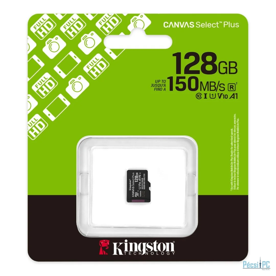 Kingston 128GB microSDXC Canvas Select Plus Gen3 Class 10 UHS-1 A1 V10 adapter nélkül