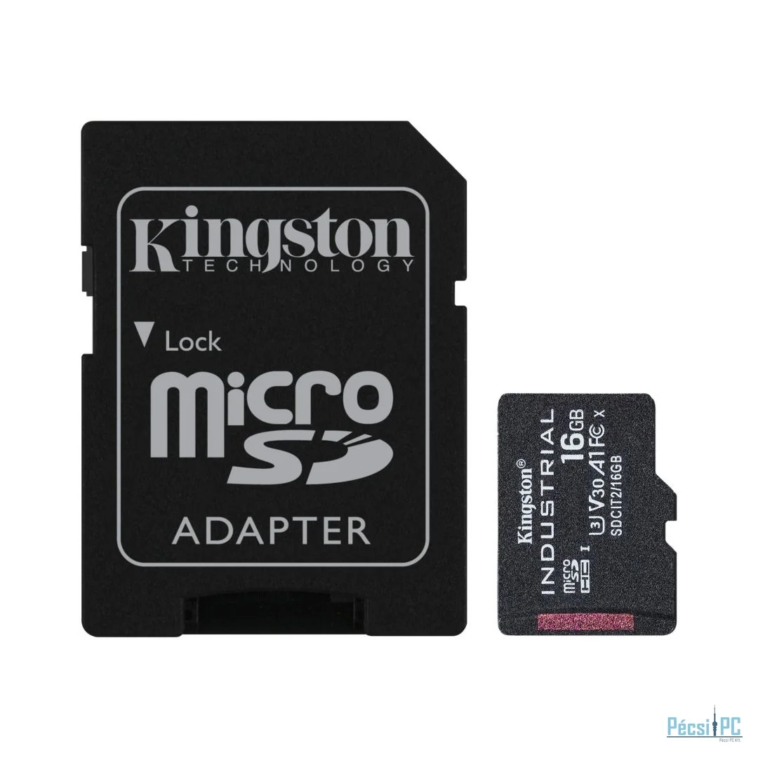 Kingston 16GB microSDHC Class 10 CL10 U3 V30 A1 Industrial + adapterrel