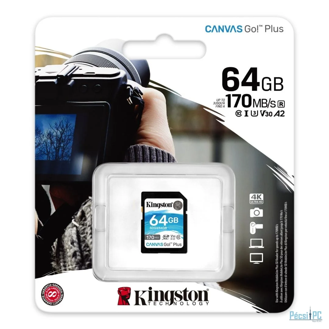 Kingston 64GB SDXC Canvas Go! Plus Class 10 170R C10 UHS-I U3 V30