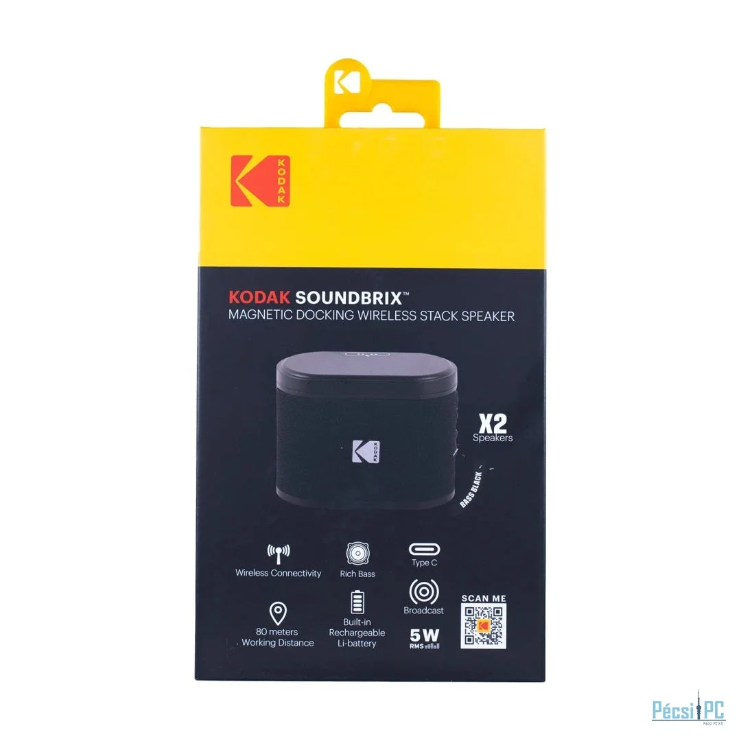 Kodak BRIXBK2 Soundbrix Mini Bluetooth Coloured Portable Two Speakers Black