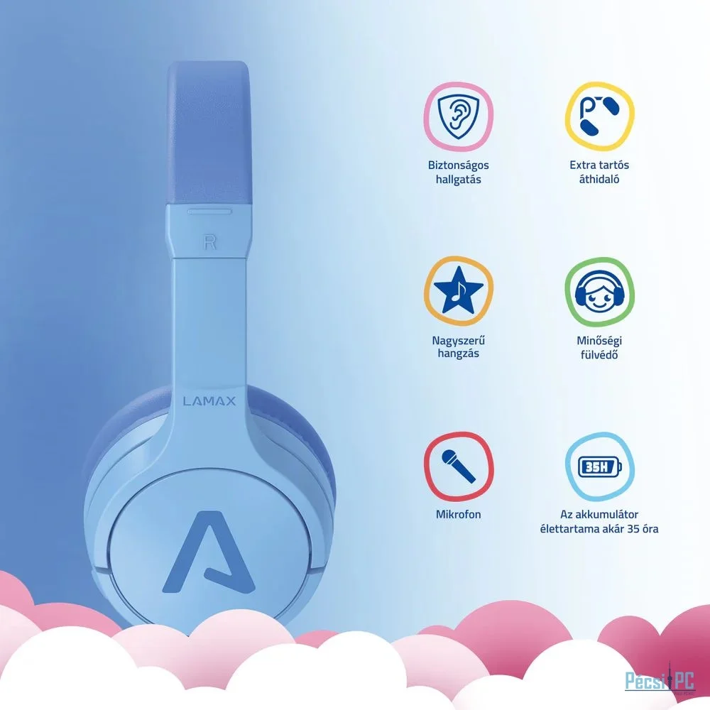 A fejhallgató hangereje maximum 85 vagy 94 dB-re van korlátozva, csak váltson a kiválasztottra. A LAMAX SafeSound2.0© technológia a gyermekek hallását is védi.