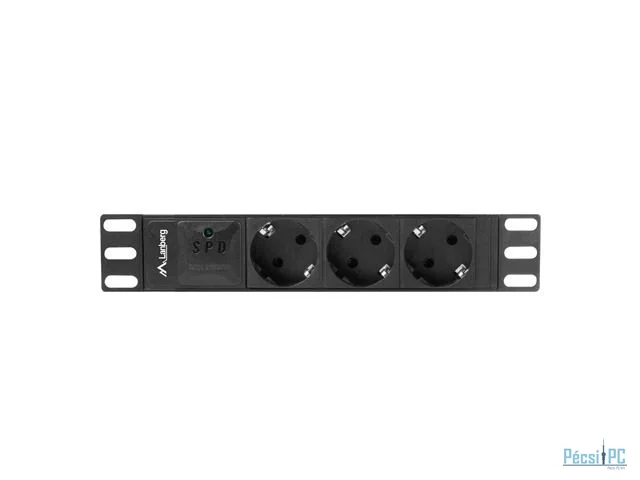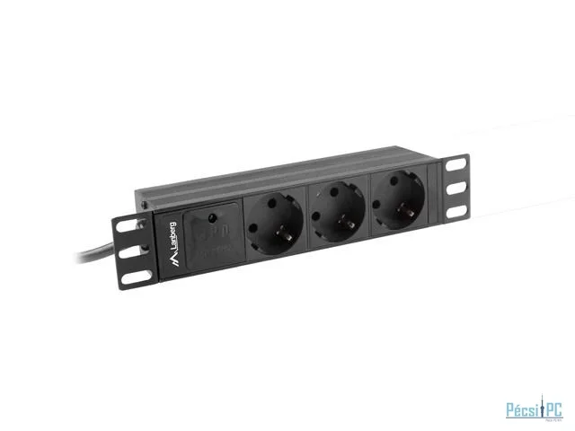 Lanberg 10" PDU/elosztósor 1U 16A 2m 3x Schuko aljzat Black